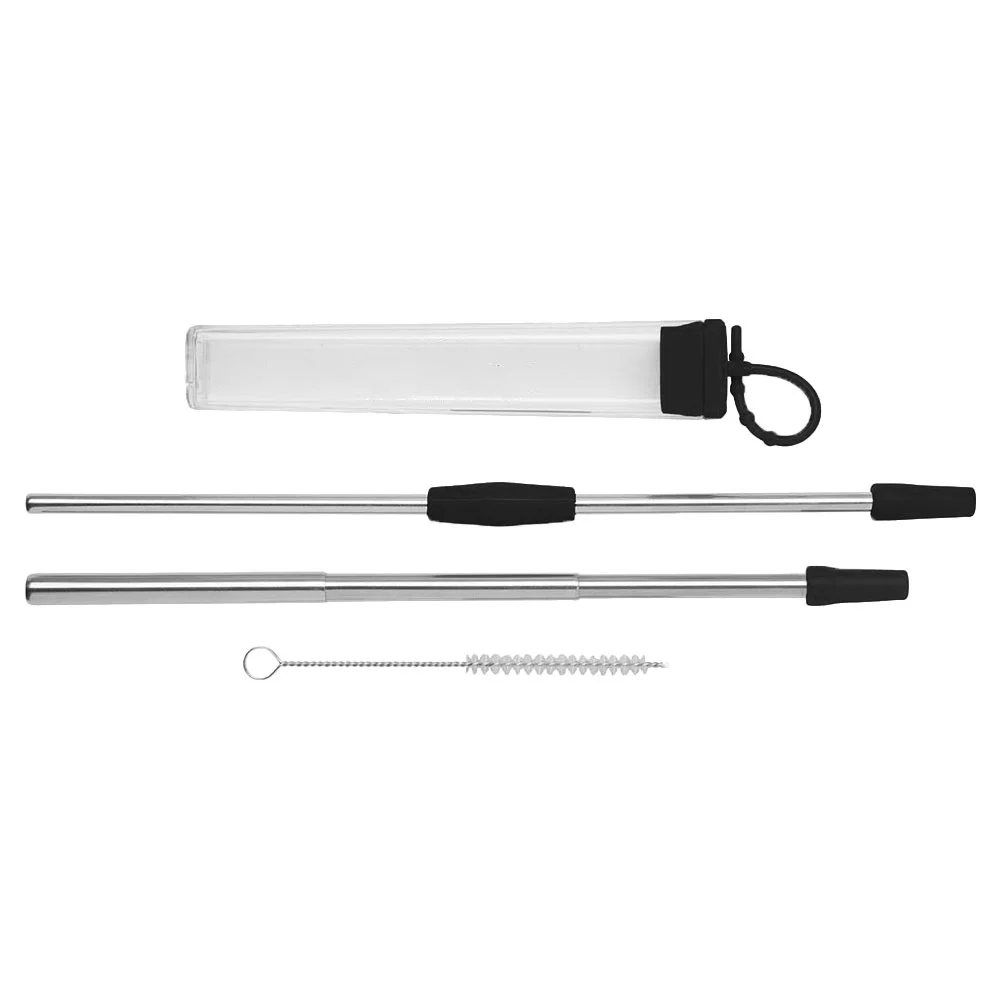 This set includes 2 stainless steel straw parts that can be used individually or linked together with a silicone connector for use in taller cups, as well as a telescopic stainless steel straw that extends to 10"