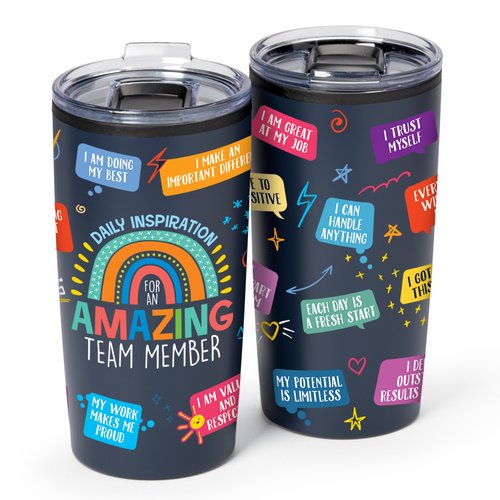 • Features our exclusive Daily Inspiration for an Amazing Team Member design on front; Positive messages all over