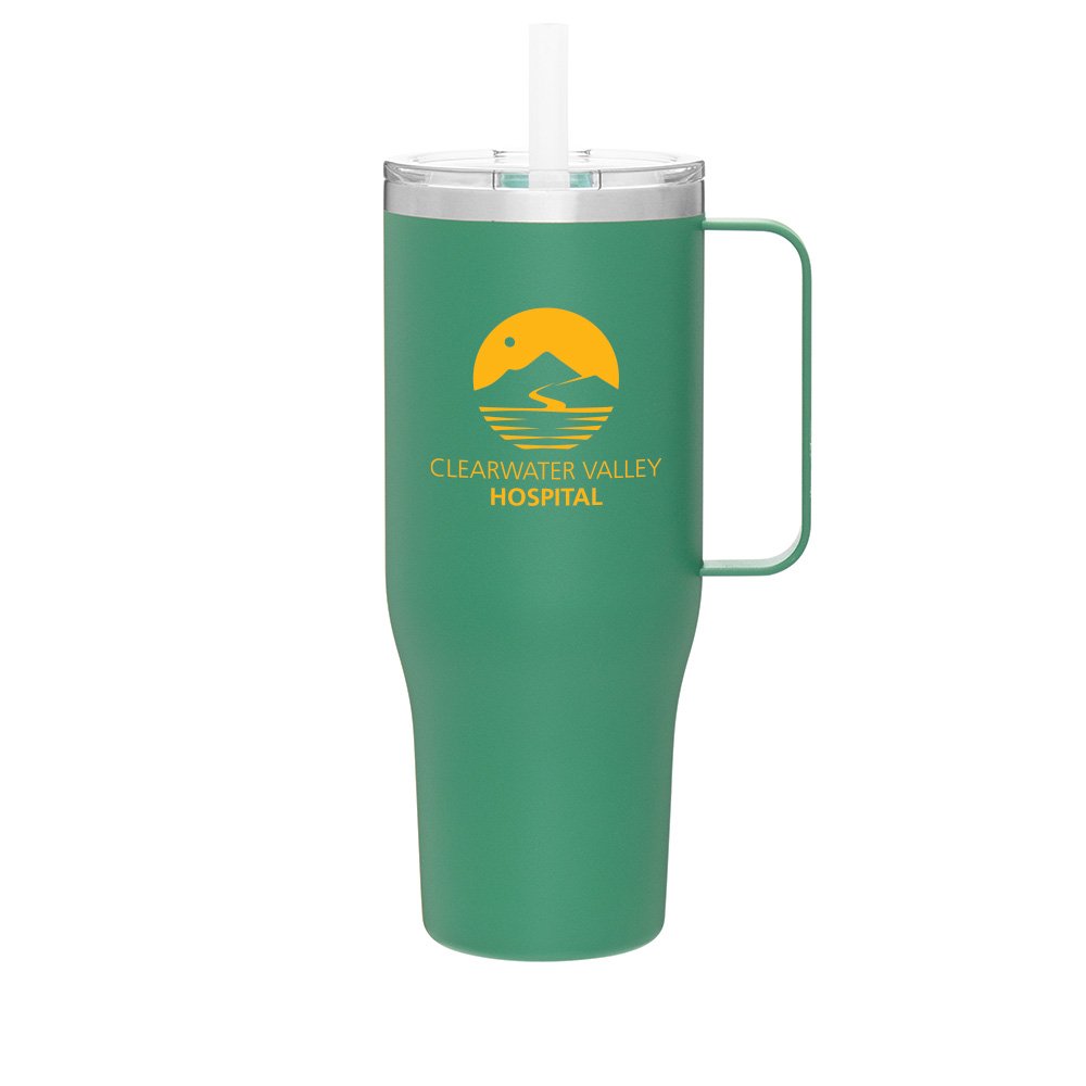 Skylar Double-Wall Stainless-Steel Vacuum Handle Mug 28 oz. - Laser-Engraved Personalization Available