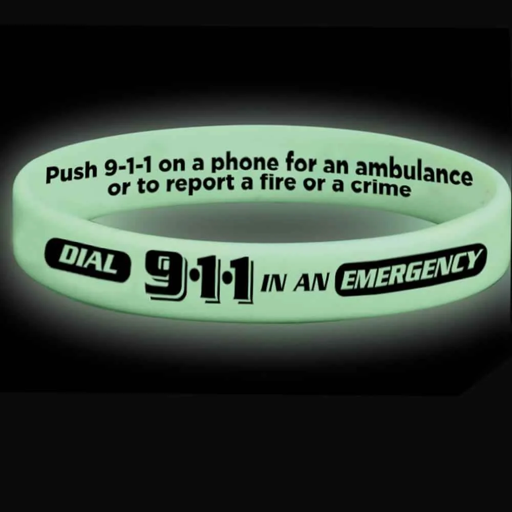100 Dial 911 In An Emergency Glow Silicone Bracelets