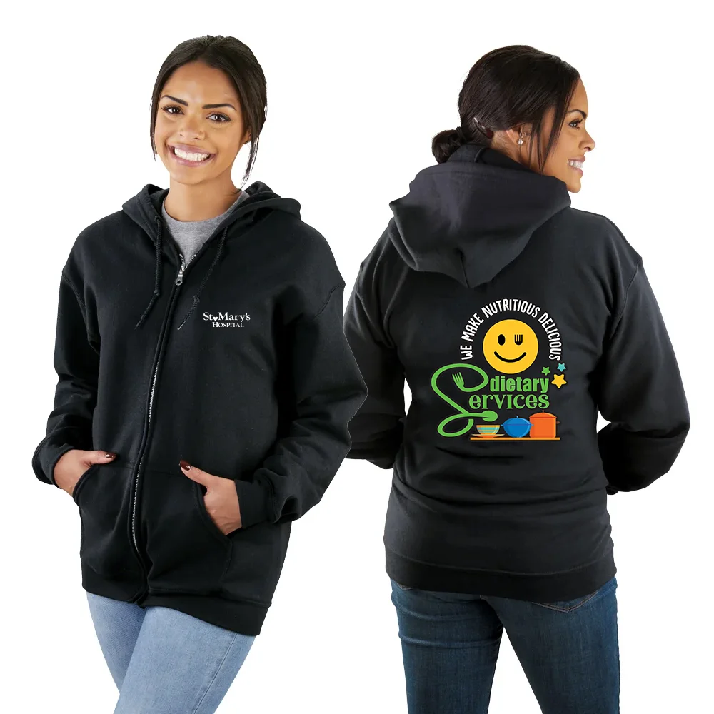 Dietary Services: Hands That Serve, Hearts That Care Gildan® Unisex Full-Zip Hooded Sweatshirt - Silkscreened Personalization Available