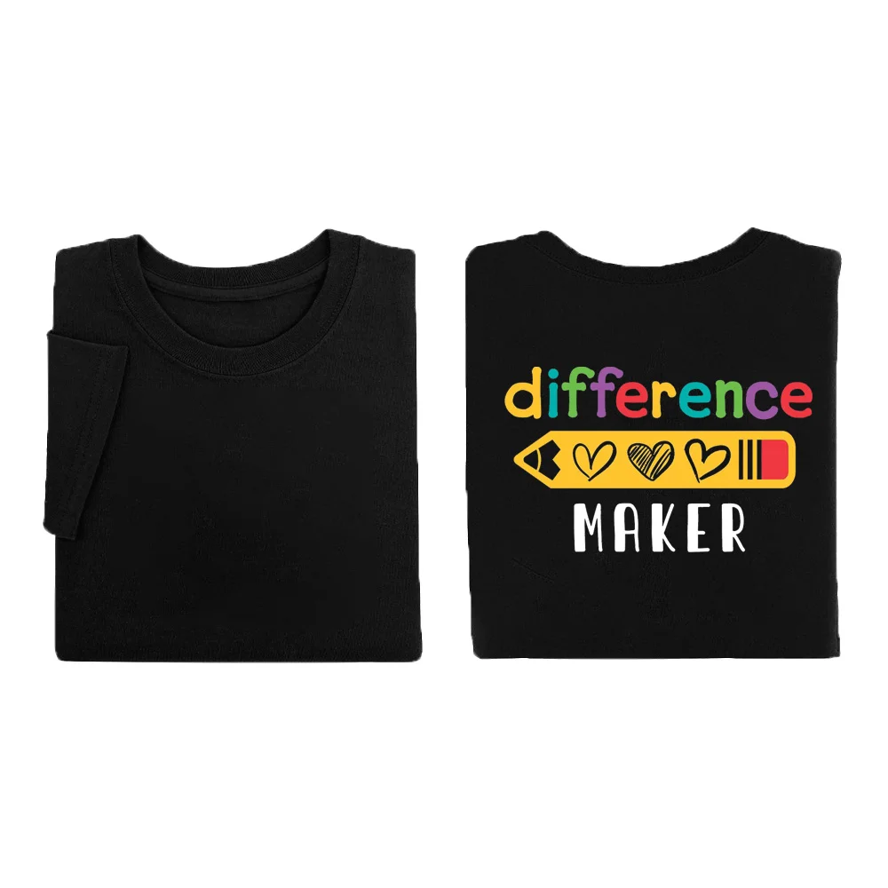 Difference Maker (Pencil) Unisex 2-Sided Short-Sleeved T-Shirt - Silkscreened Personalization Available