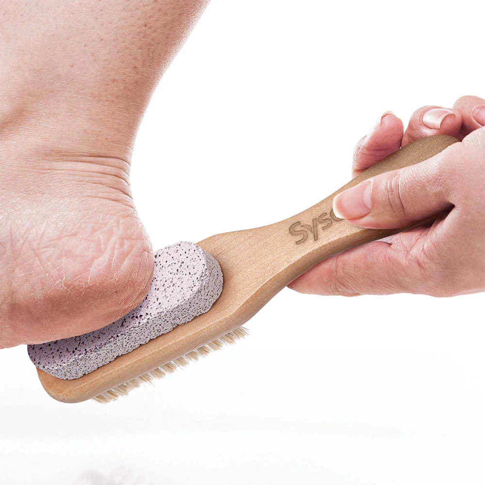 Pumice stone on one side, great for exfoliating cracked or dead skin