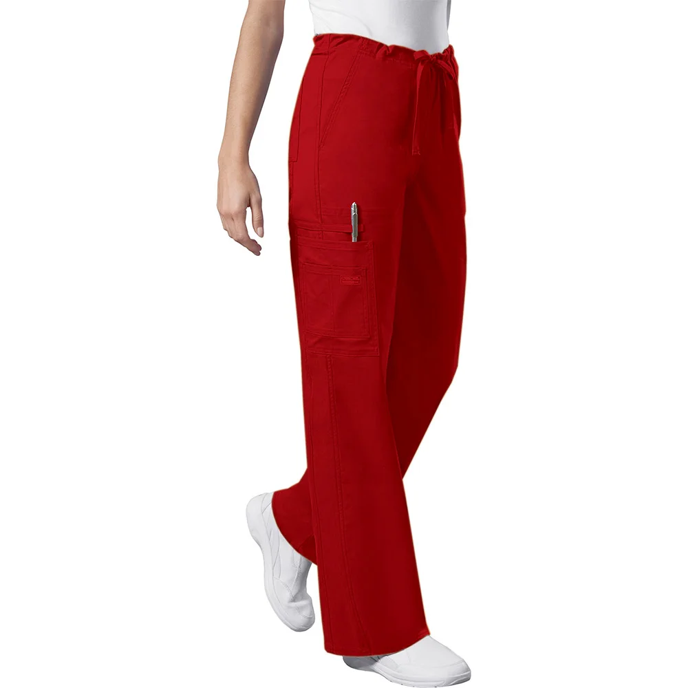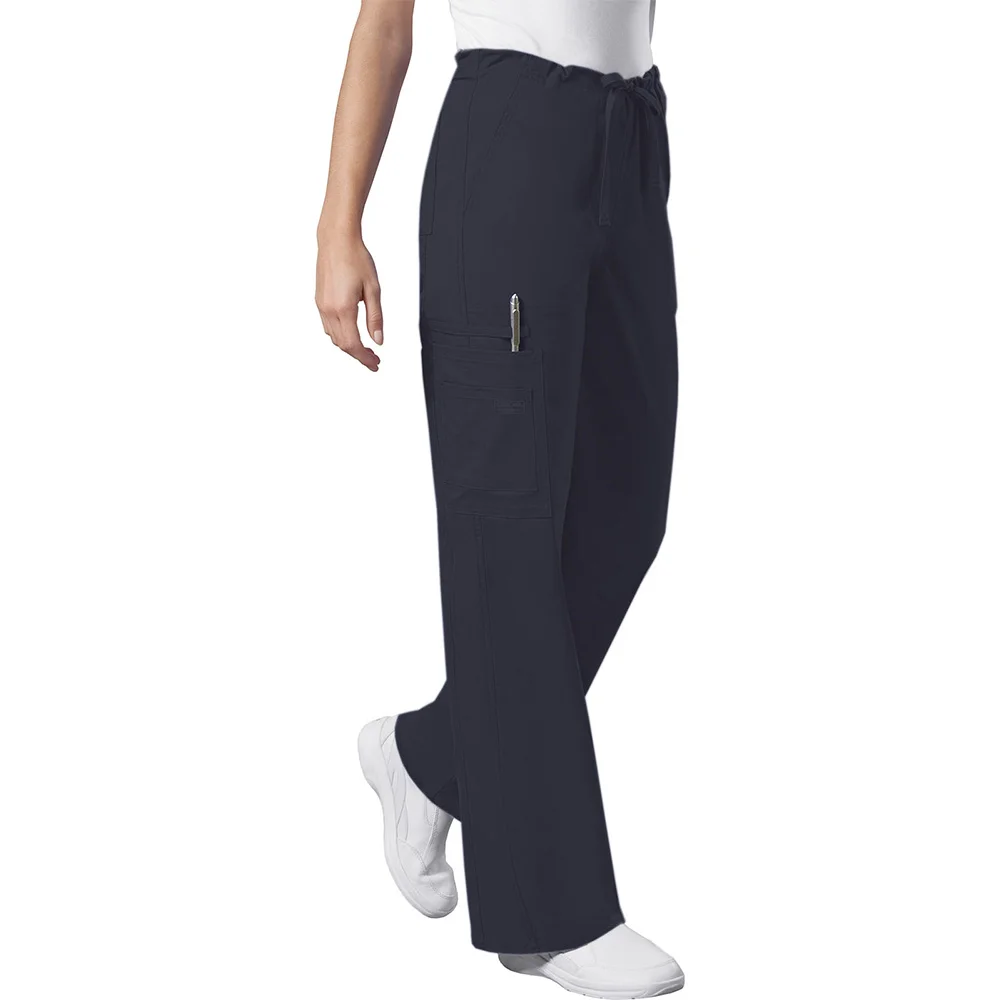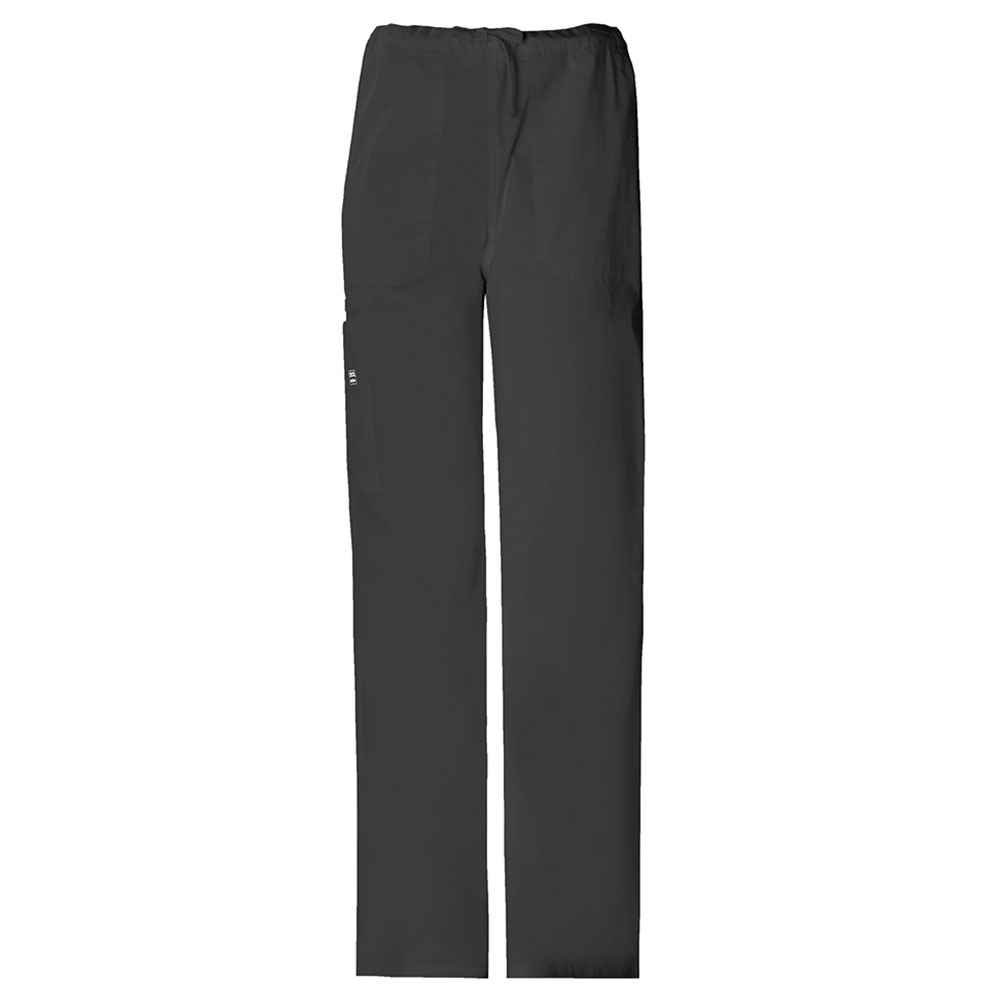 Unisex cargo pant sports a natural rise and an adjustable drawstring with an elastic waist