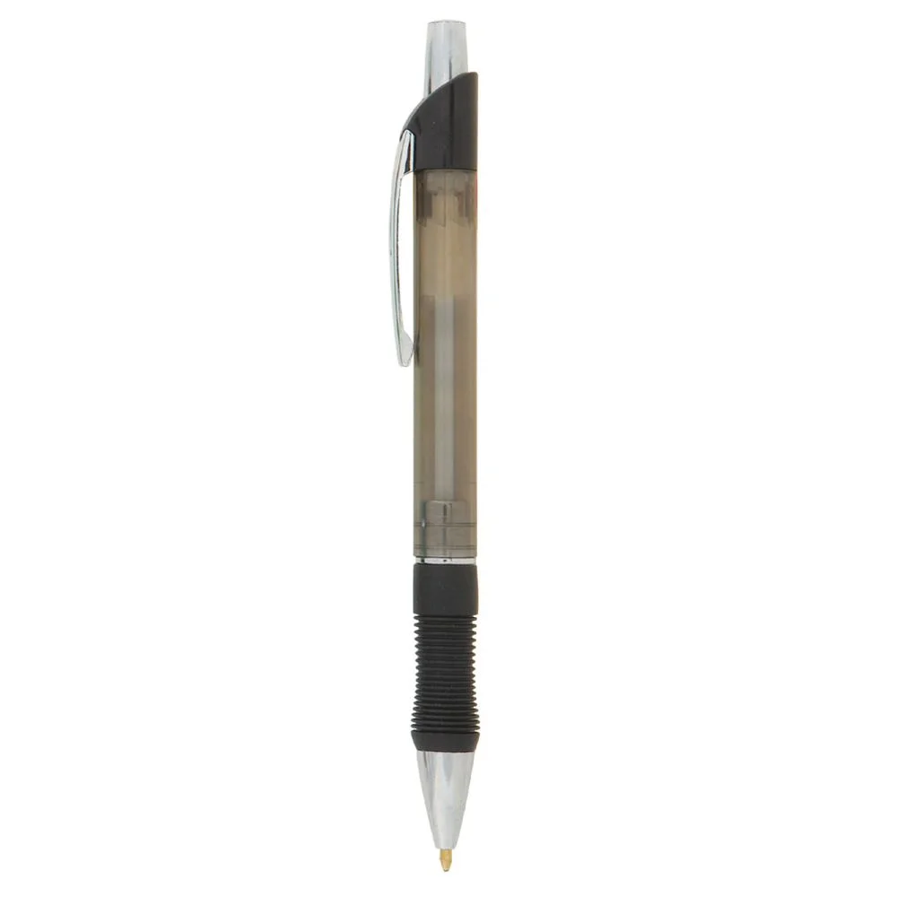 This trendy translucent barrel pen features a black grip section that provides added comfort and writes in eye-catching Eversmooth(R) ink in blue or black