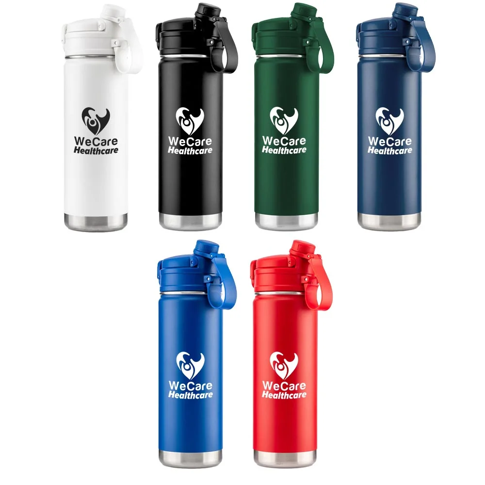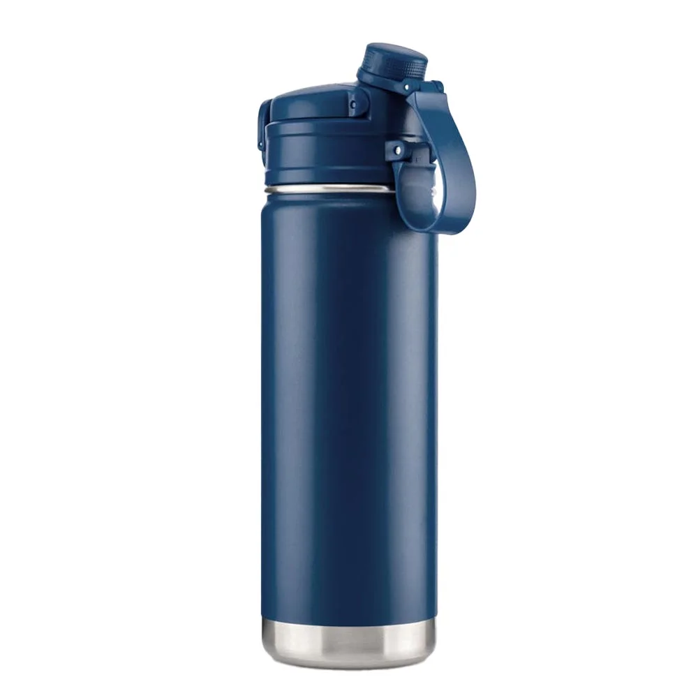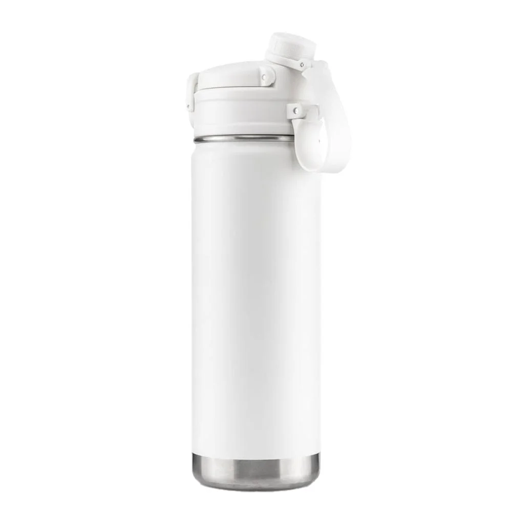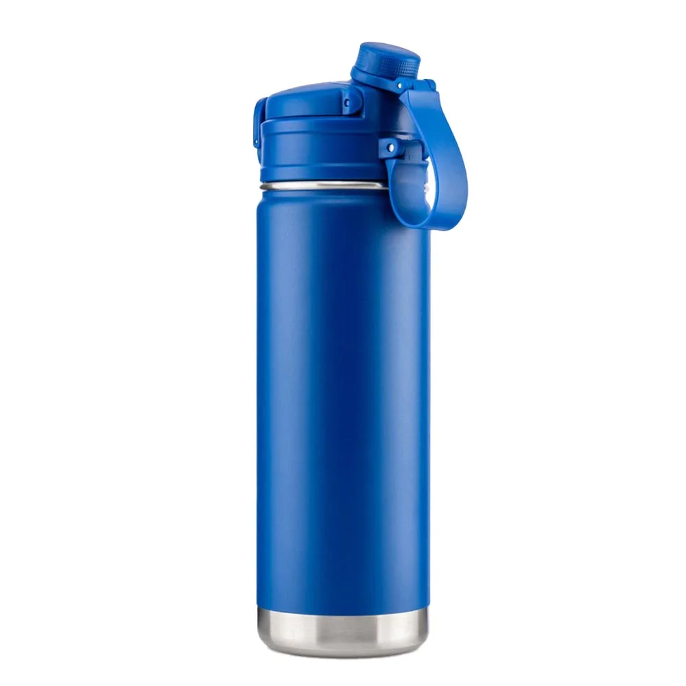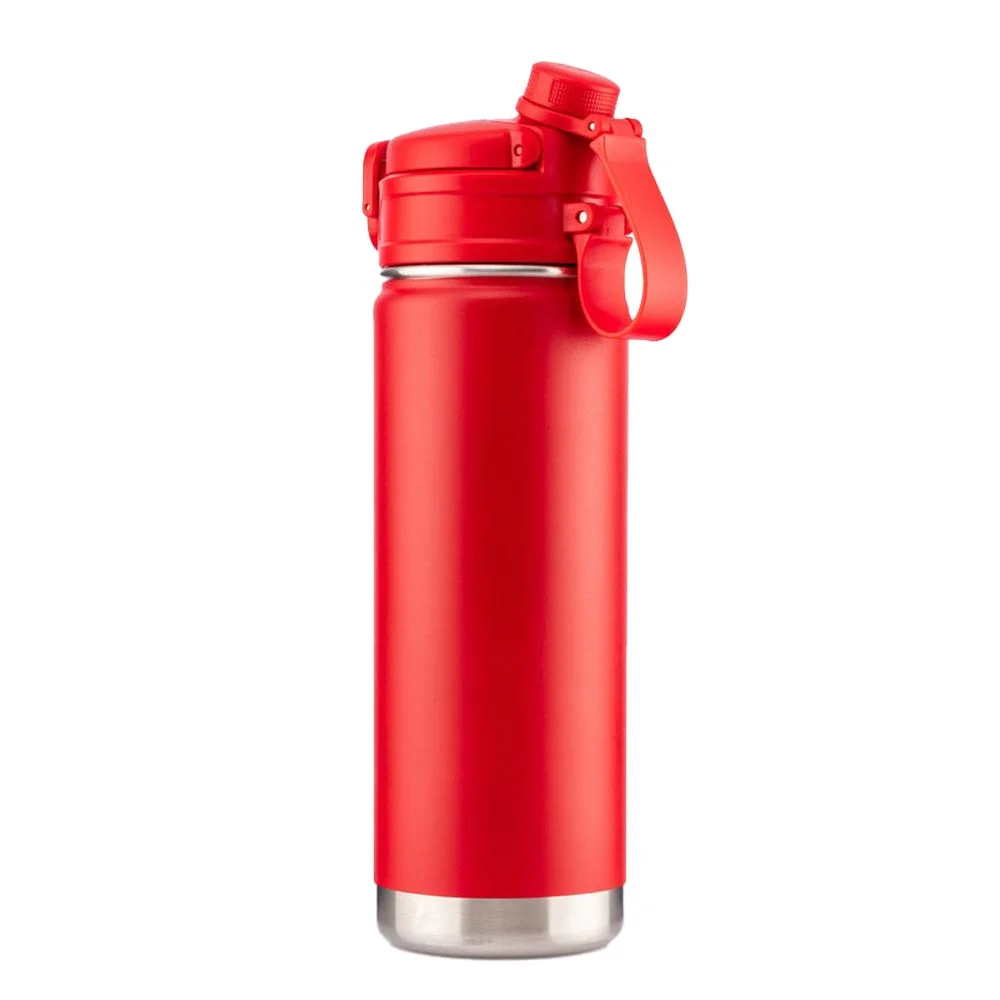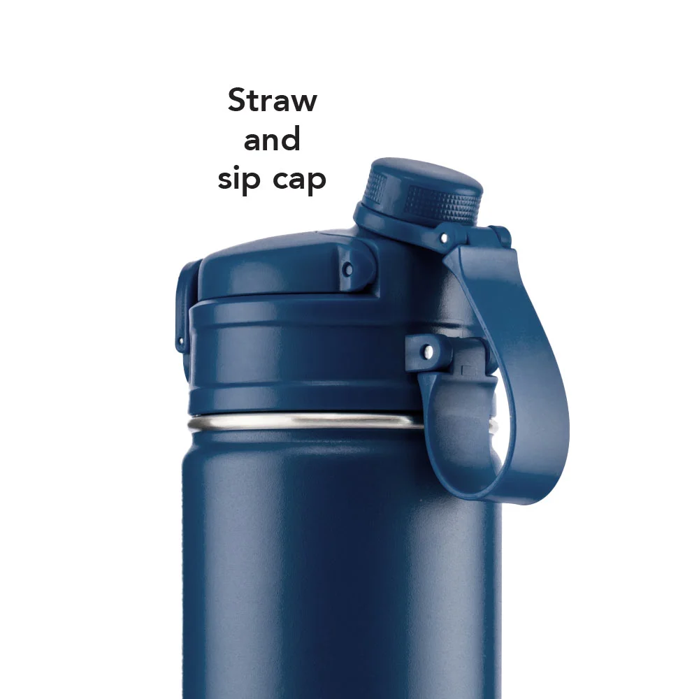 • Double lid options: flip-out spout with silicone straw and sip cap with screw-on lid and carry loop