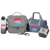 Lunch/Cooler Bag: 9" X 8" X 6"; Food Container: 6" X 6" X 4", ; Water Bottle: 32-Oz.; Duffel Bag: 18" X 11" X 8"; Scissors, ; 7 1/2"L