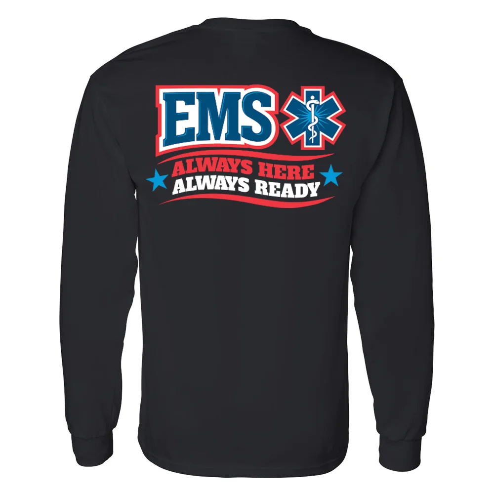 EMS: Always Here, Always Ready Unisex 2-Sided Long-Sleeved T-Shirt - Silkscreened Personalization Available