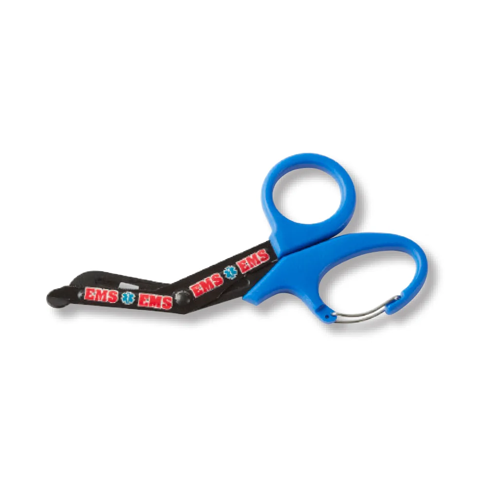 Medical Bandage/Utility Scissors With Carabiner: Effortlessly cuts bandages, gauze, tape, clothing, and more; Sturdy, surgical-grade stainless steel; Comfortable, soft-grip handles; Built-in, practical carabiner keeps scissors easily accessible; Autoclavable