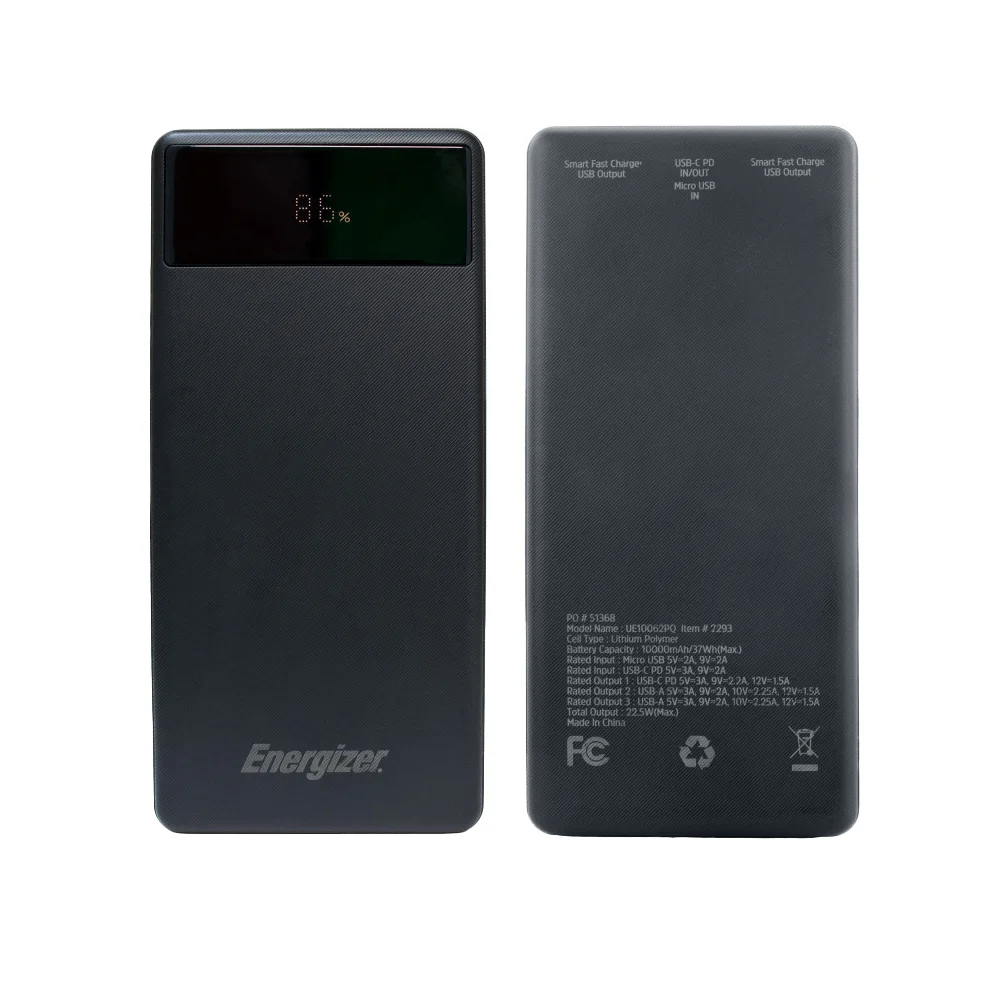 Energizer® Power Bank With Digital Display 10,000 mAh 22.5W - Full-Color Personalization Available