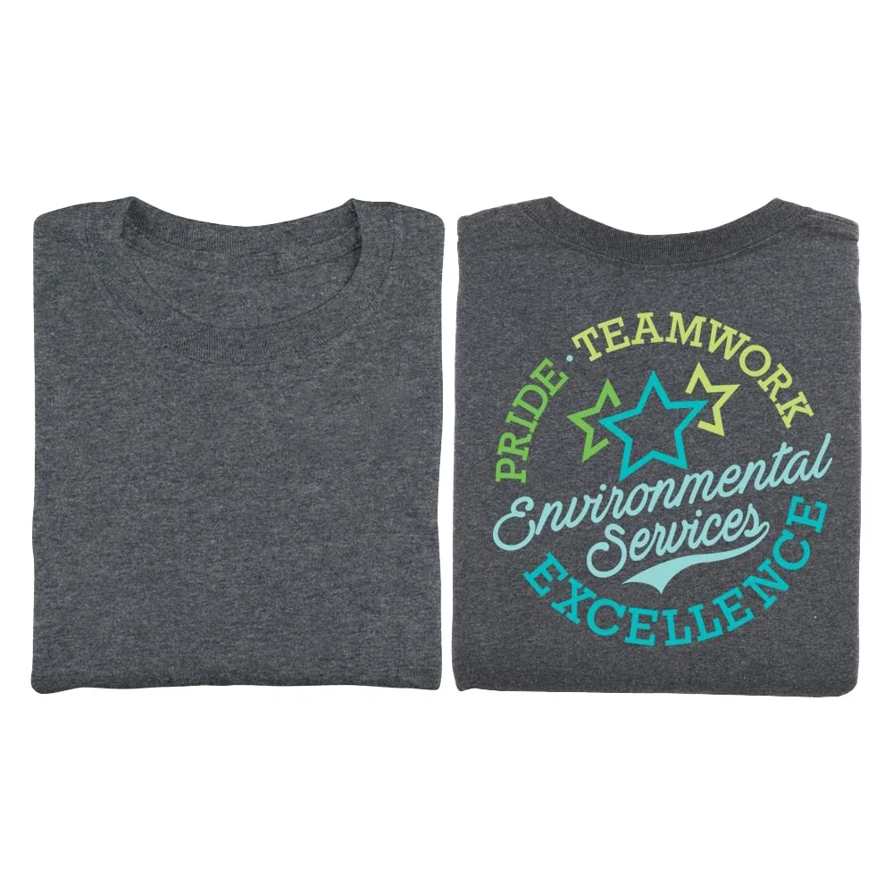 Available with our exclusive Environmental Services: Pride, Teamwork, Excellence design on back and your screenprinted personalization on the front upper left chest
