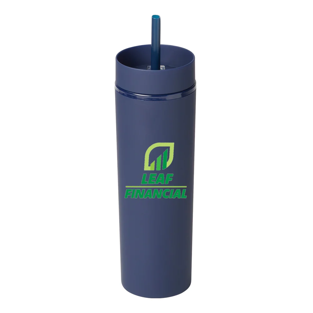 Personalized 16-oz. Tumbler: Sipping simplified: one lid, two ways to enjoy hot or cold beverages on the go; Double-walled acrylic body with easy-grip, satin, rubberized finish; Screw-on lid with two ways to sip: slide lid opening for hot drinks & straw port opening for cold drinks; Reusable soft straw included; Slips through straw port; Stopper on end prevents spills and keeps it in place; Eco friendly; Reusable; BPA free; Note: Hand wash recommended