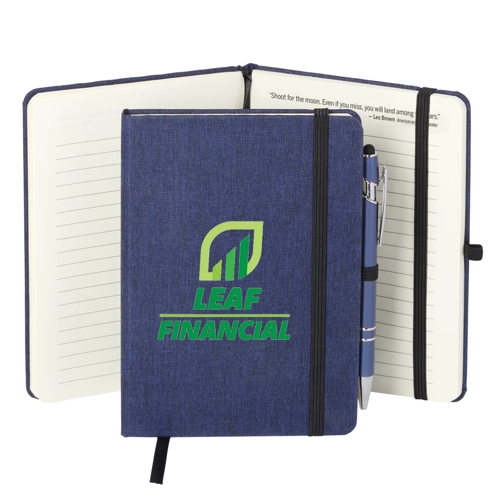 Personalized Journal & Stylus: Heathered, linen-like hard cover; 80 lined pages; Includes inspirational quotes on the top of each right page; Includes a teamwork insert; Ribbon bookmark, elastic closure, and elastic pen loop; Stylus Pen included for note-taking and touchscreen navigation; Black ink