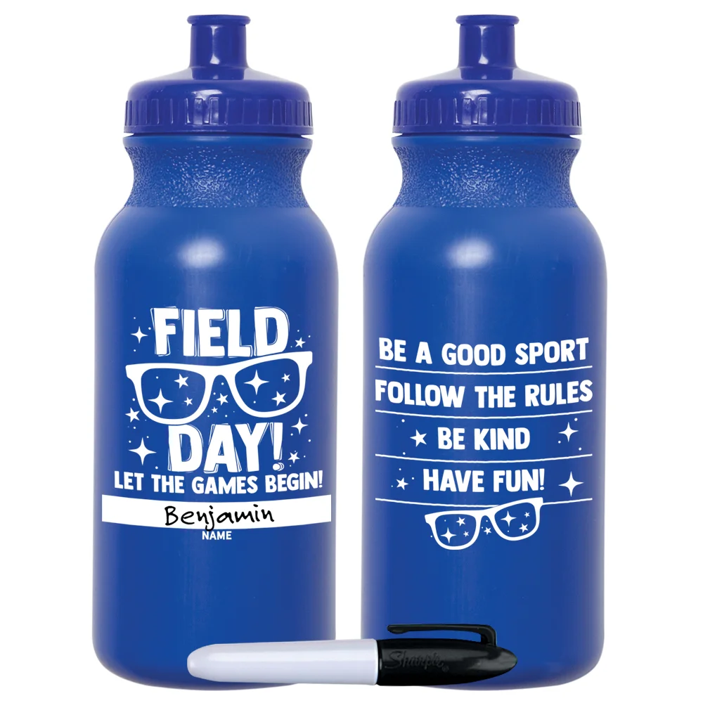Field Day! Let the Games Begin Royal Blue Water Bottle 20-Oz. With Permanent Marker - Pack of 10