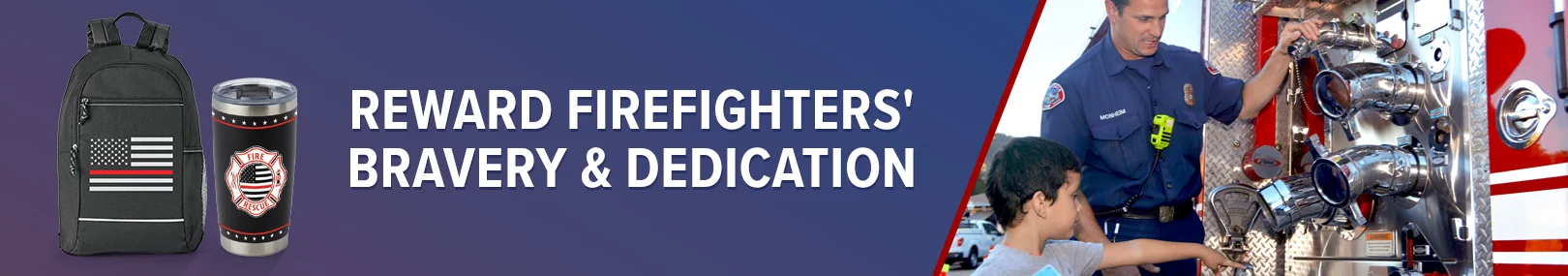 There are so many other firefighter gifts to recognize the members of your team, from the chief to your administrative staff. Choose from a stylish collection of backpacks and coolers, which feature your department logo and safety message. Or give water bottles and other drinkware featuring our exclusive appreciation themes. You can also have your selections personalized with your department name, or choose from one of our many available stock logos.