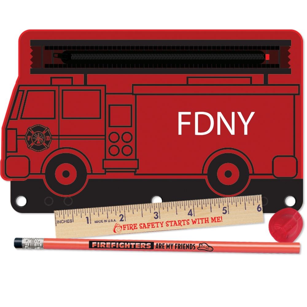 When students place this fun red fire engine pouch with zipper and binder edge into their ring binders, they'll know firefighters can be trusted and be aware of important fire safety tips