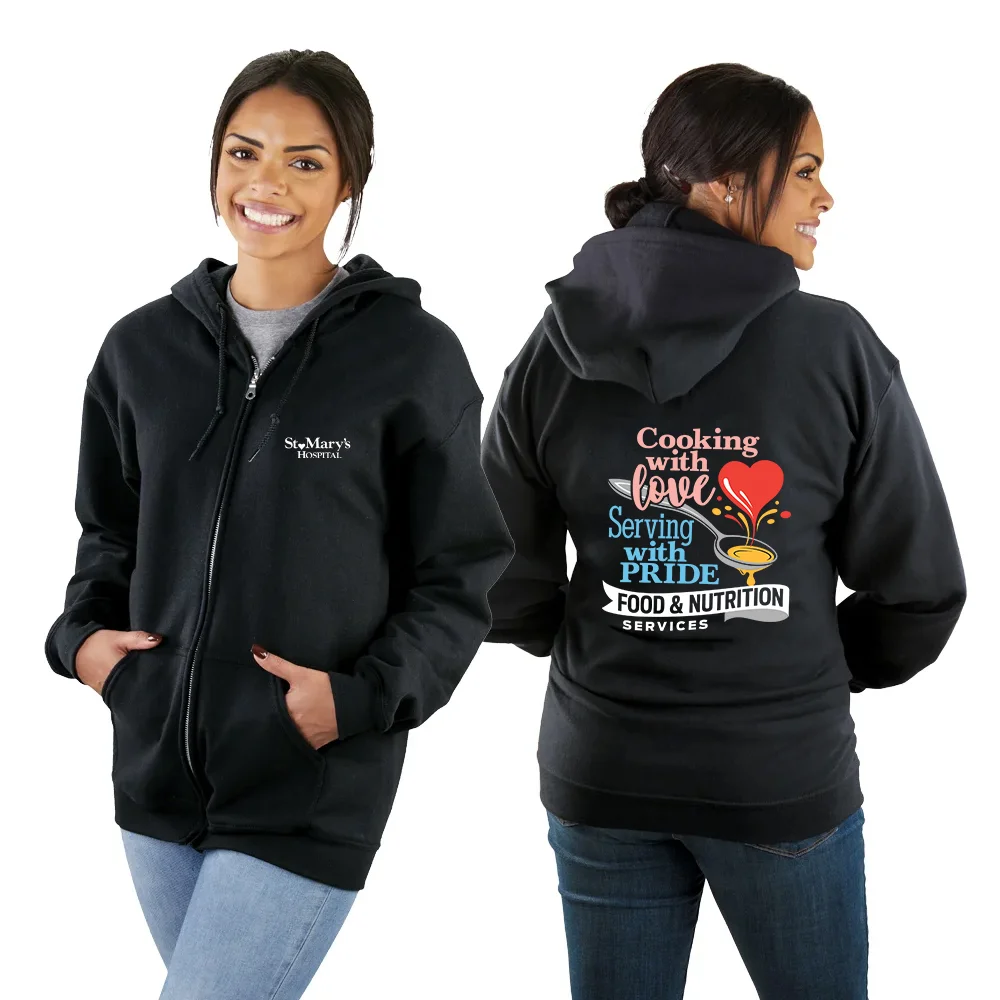 Dietary Services: Hands That Serve, Hearts That Care Gildan® Unisex Full-Zip Hooded Sweatshirt - Silkscreened Personalization Available