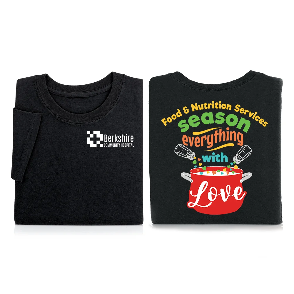 Dietary Services: Hands That Serve, Hearts That Care Unisex 2-Sided Short-Sleeved T-Shirt - Silkscreened Personalization Available