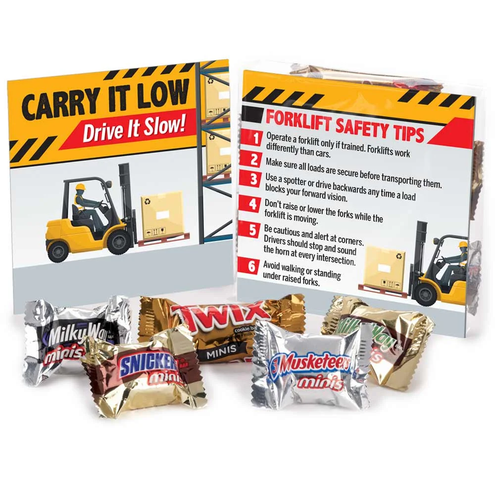• Provide information on forklift safety with this safety card and mini treats gift pack