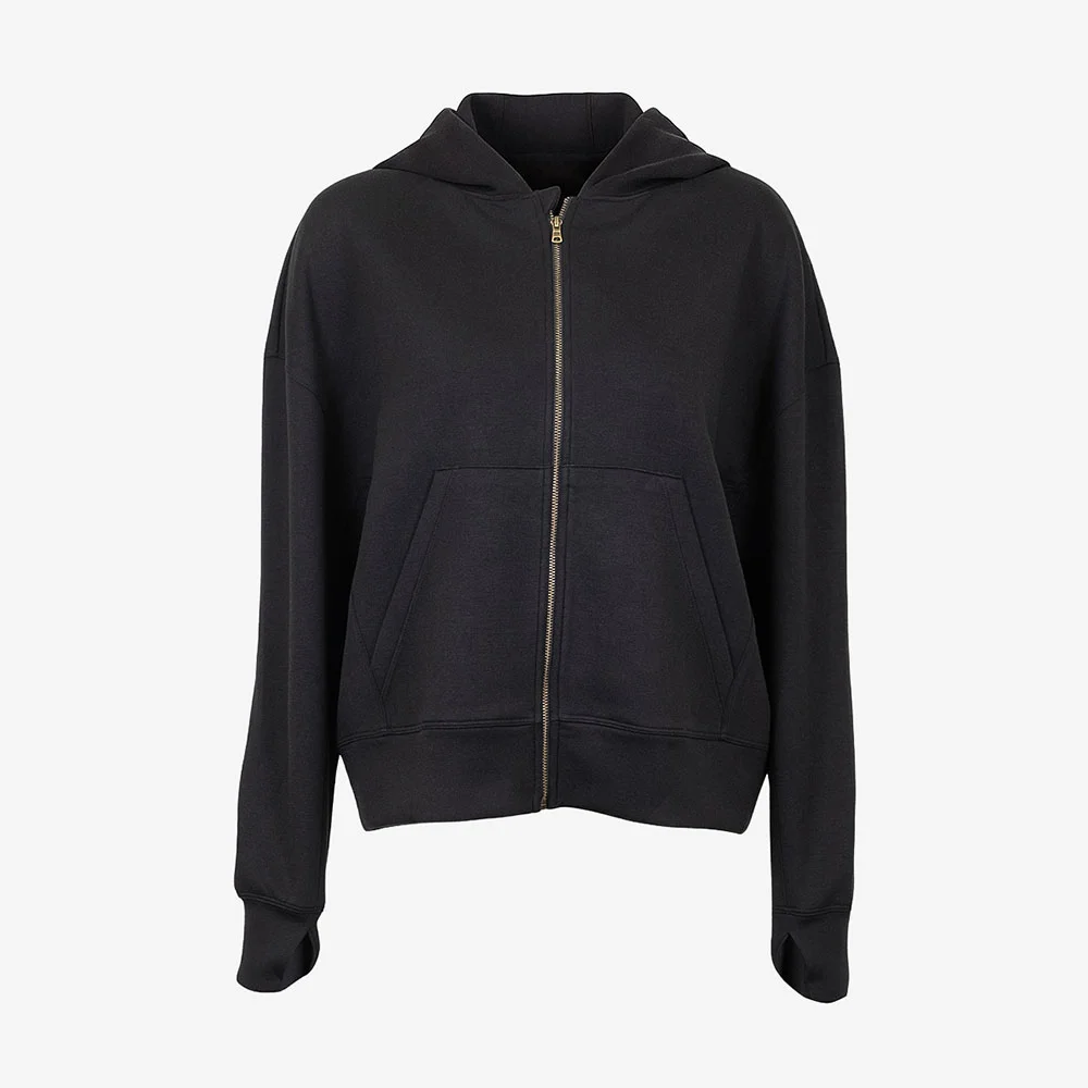 • This ultra-soft hoodie blends buttery smooth, laid-back comfort with refined detail perfect for effortless layering.
