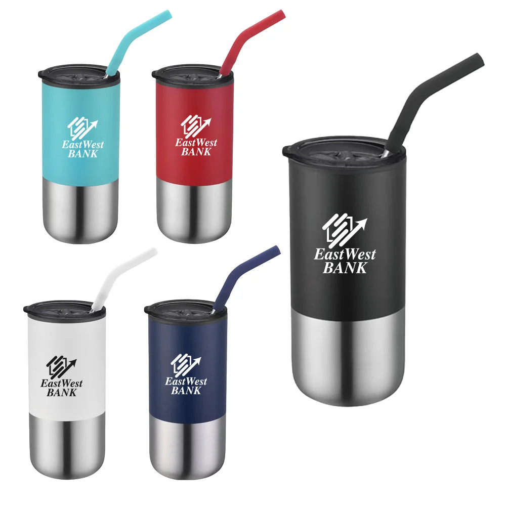 Fresno Stainless-Steel Outer/Plastic Liner Tumbler 16 oz. With Straw - One-Color Personalization Available