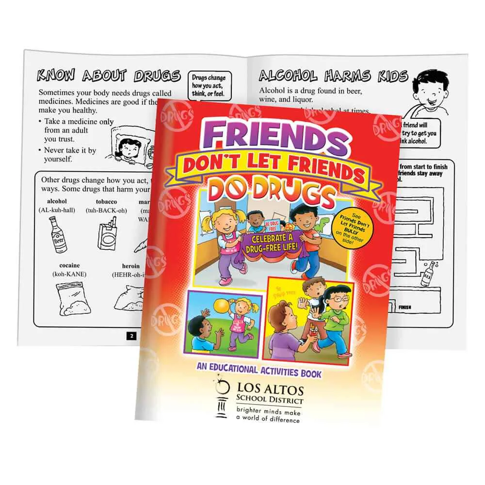 Half the book (8 pages) teaches kids about the dangers of drugs, making healthier choices, and enlisting the help of trusted adults to keep themselves and their friends drug free
