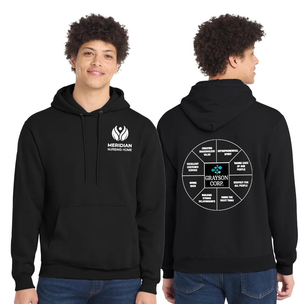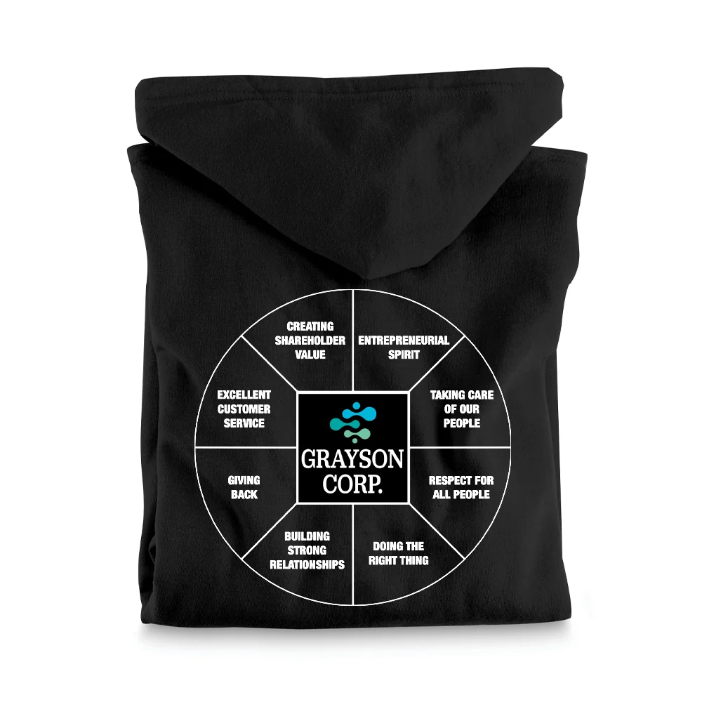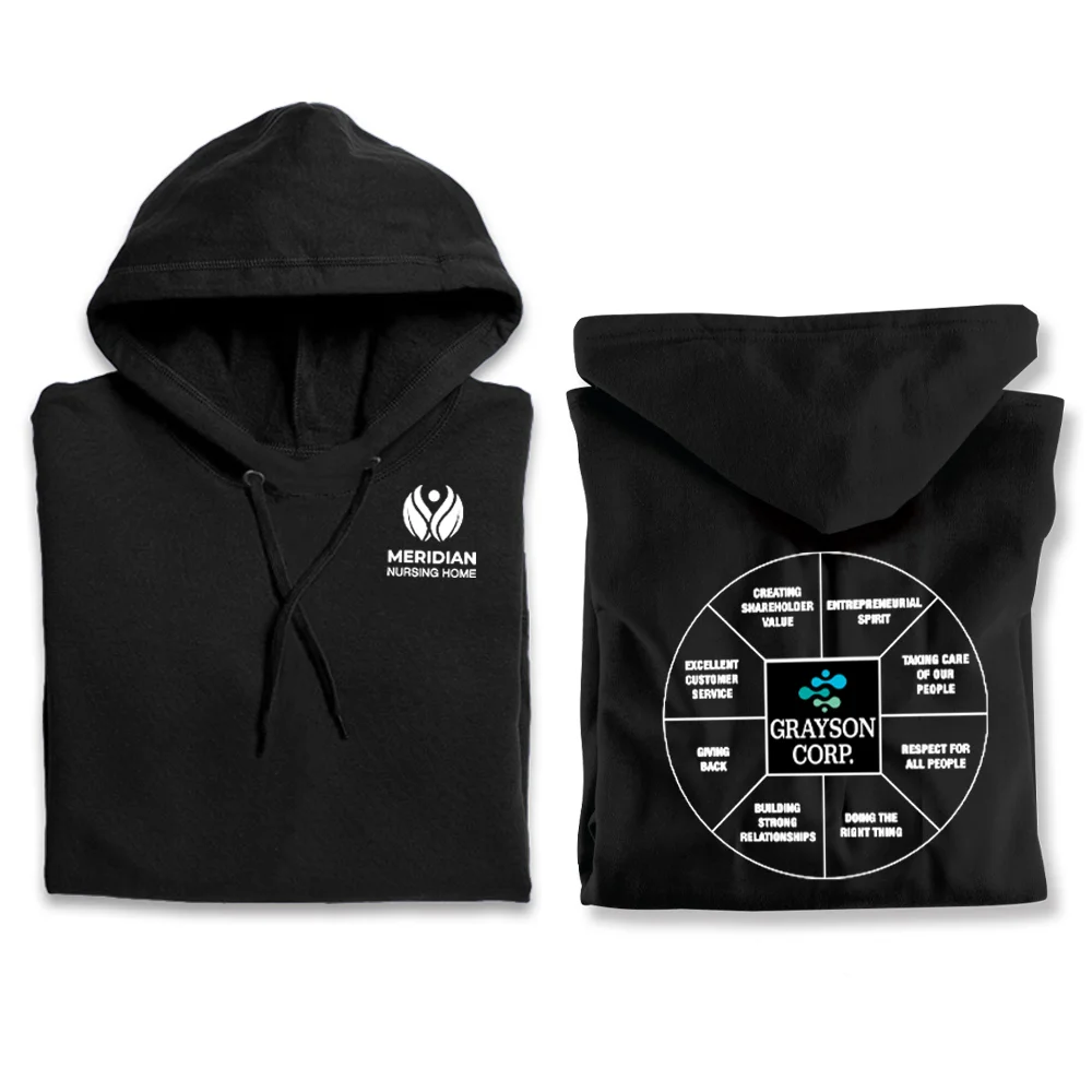 Add your custom silkscreened personalization to the upper left chest and full back of the Hoodie