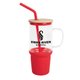 Snap-on, spill-resistant bamboo lid with straw port