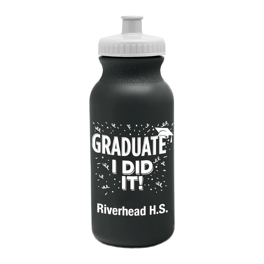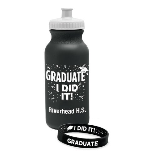 20-oz. Bottle: Refreshing gift for active students; Screw-on, push-pull lid; Eco friendly; Reusable; BPA free; Drink Water Each Day hydration reminders on back; Note: Hand wash recommended
