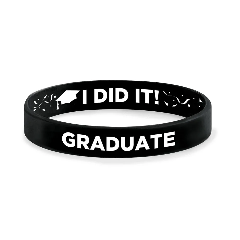 Bracelet: Trendy way to recognize all graduates; Lead-free, PVC-free, and latex-free silicone; FDA compliant