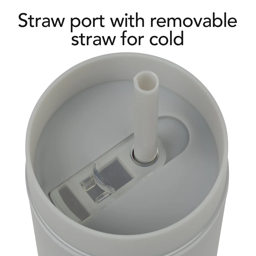 Personalized 16-oz. Tumbler: Sipping simplified: one lid, two ways to enjoy hot or cold beverages on the go; Double-walled acrylic body with easy-grip, satin, rubberized finish; Screw-on lid with two ways to sip: slide lid opening for hot drinks & straw port opening for cold drinks; Reusable soft straw included; Slips through straw port; Stopper on end prevents spills and keeps it in place; Eco friendly; Reusable; BPA free; Note: Hand wash recommended