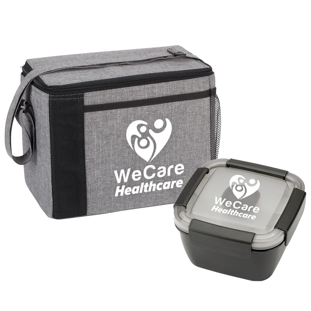Make mealtime on the go more convenient with this gift set; Includes: Grayson Lunch/Cooler Bag & Locking Food Container With Compartments