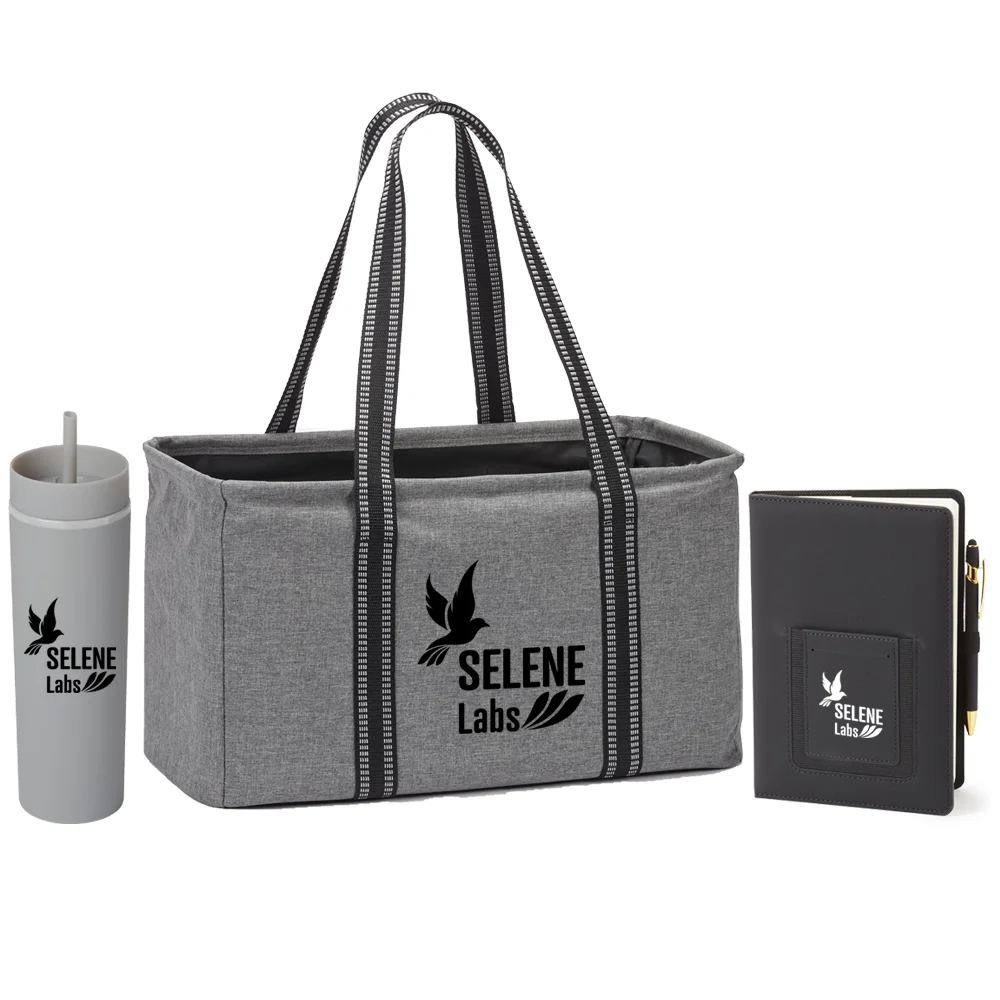 3-piece gift set includes: Utility Tote, Canyon 2-in-1 Tumbler & Sipper 16 oz., & Eastland Refillable Journal with Phone Pocket & Stylus Pen