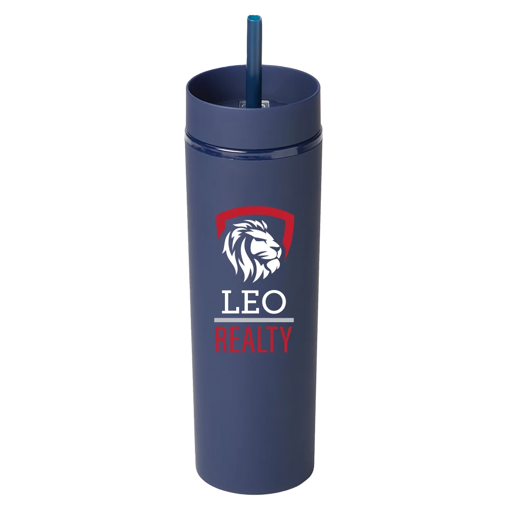 Personalized 16-oz. Tumbler: Sipping simplified: one lid, two ways to enjoy hot or cold beverages on the go; Double-walled acrylic body with easy-grip, satin, rubberized finish; Screw-on lid with two ways to sip: slide lid opening for hot drinks & straw port opening for cold drinks; Reusable soft straw included; Slips through straw port; Stopper on end prevents spills and keeps it in place; Eco friendly; Reusable; BPA free; Note: Hand wash recommended