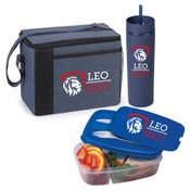 3-piece gift set includes: Grayson Lunch/Cooler Bag, Canyon 2-in-1 Tumbler & Sipper 16 oz., & 2-Section Food Container With Utensils