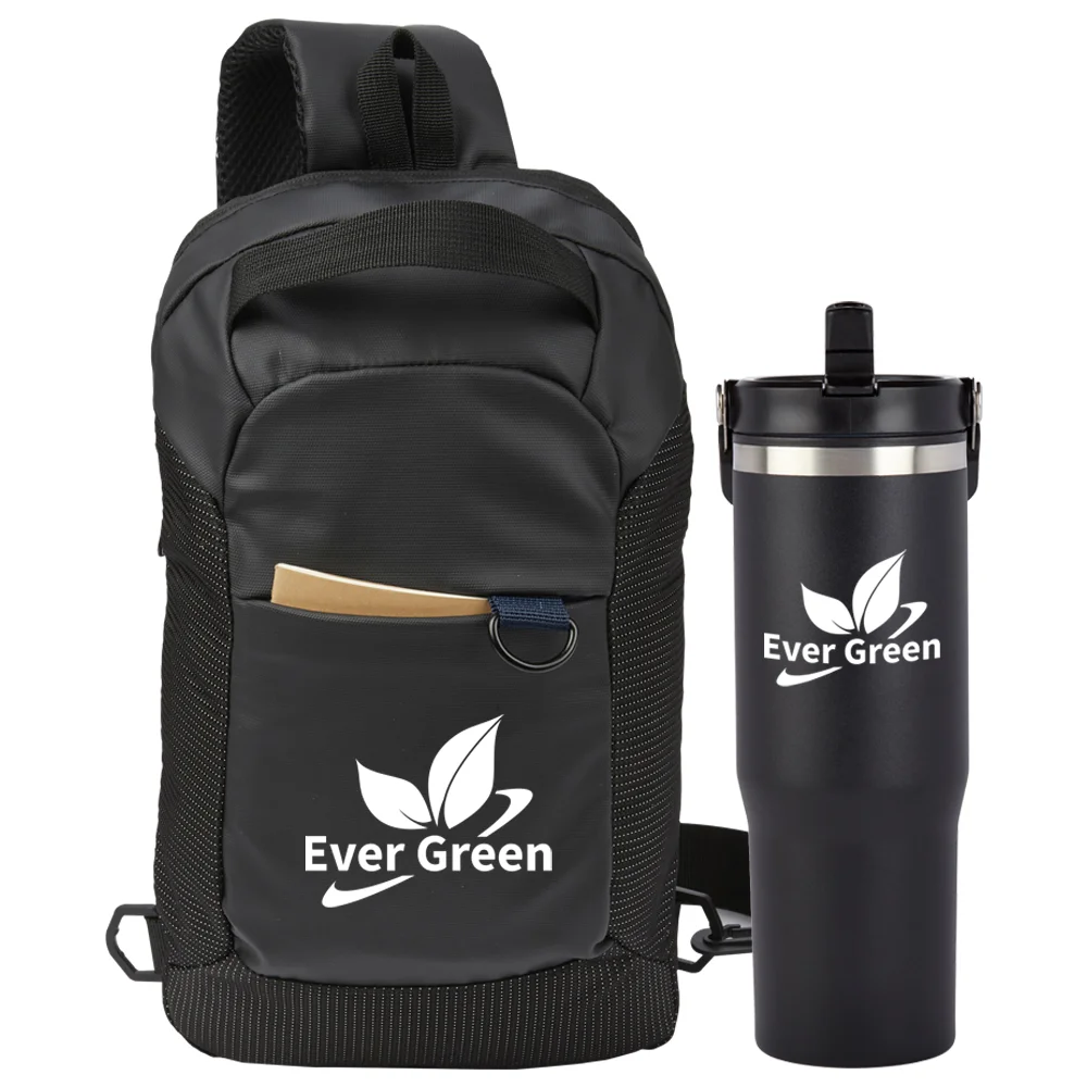 2-piece gift set includes: Harley Crossbody Sling Bag & Coldflow Double-Wall Flip-Straw Bottle 30 oz. With Carry Handle