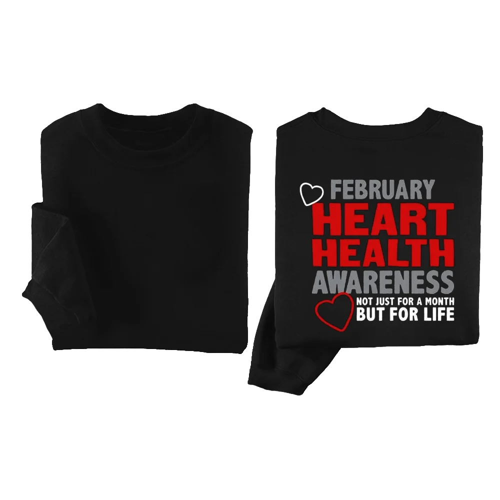 Heart Health Awareness: Not Just For A Month But For Life 2-SIded Long Sleeve T-Shirt - Personalization Available