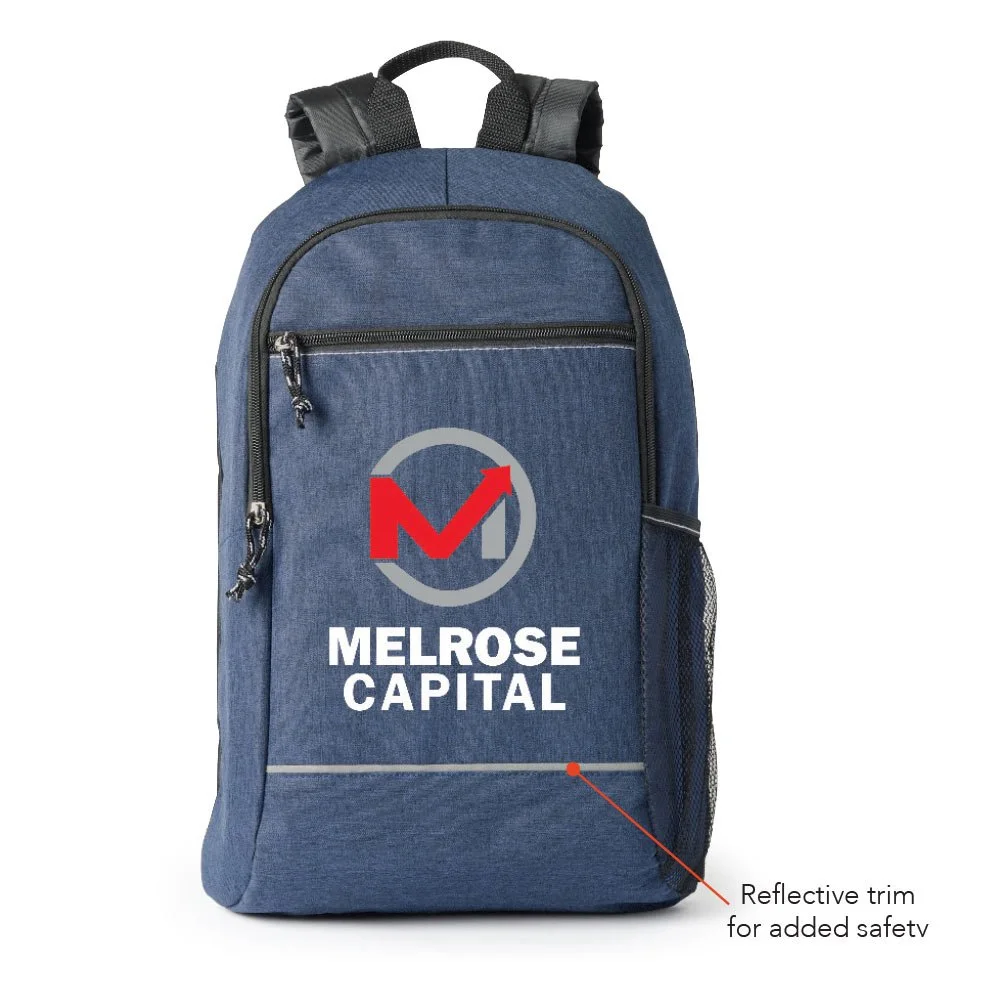 Backpack: On-trend heathered styling and just the right size for workday or weekend; Front zippered compartment; Top grab handle; Roomy interior; Mesh pocket outside for water bottle, umbrella, and more; Two padded, adjustable backpack straps for carrying comfort; 600-denier polyester with reflective trim for added safety