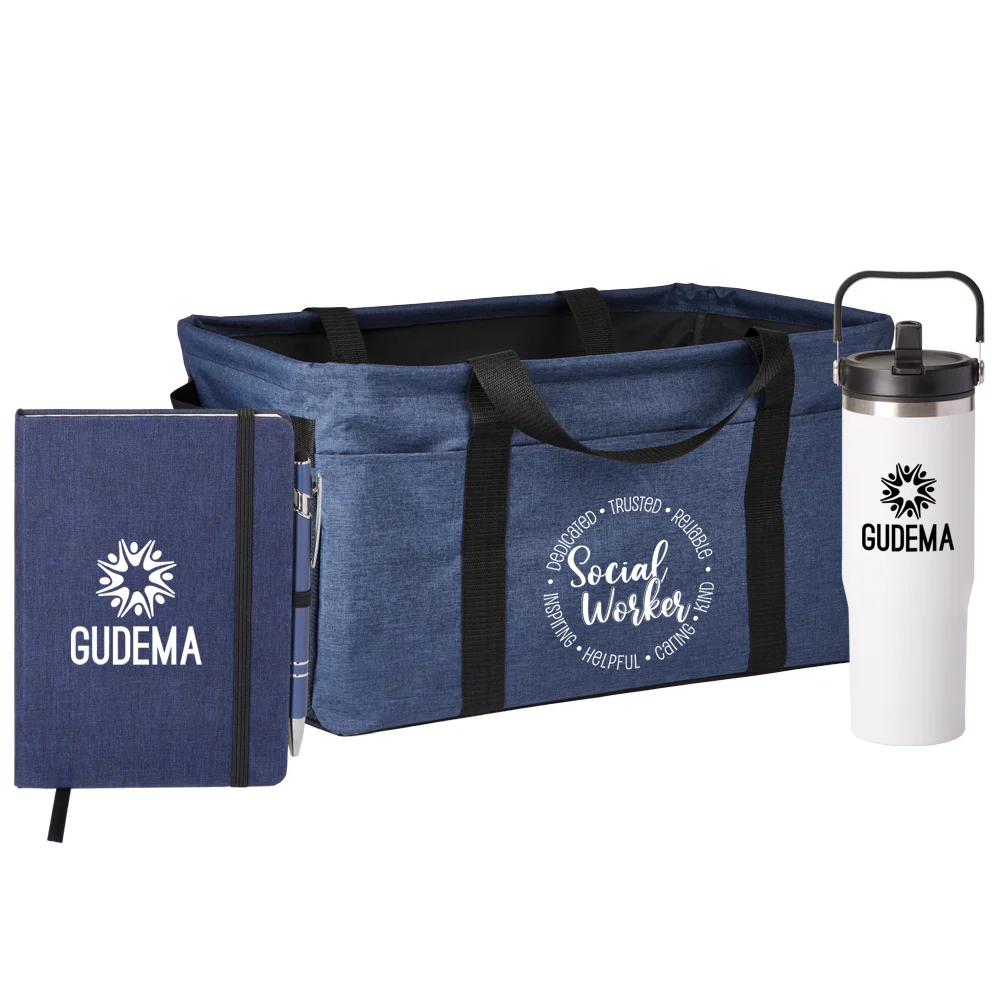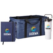 3-piece gift set includes: Heathered Journal With Quotes & Stylus Pen, 2-in-1 Bring-It-All Jumbo Utility Tote & Organizer, & Daily Dose of Positivity Coldflow Double-Wall Flip-Straw Bottle 30 oz. With Carry Handle