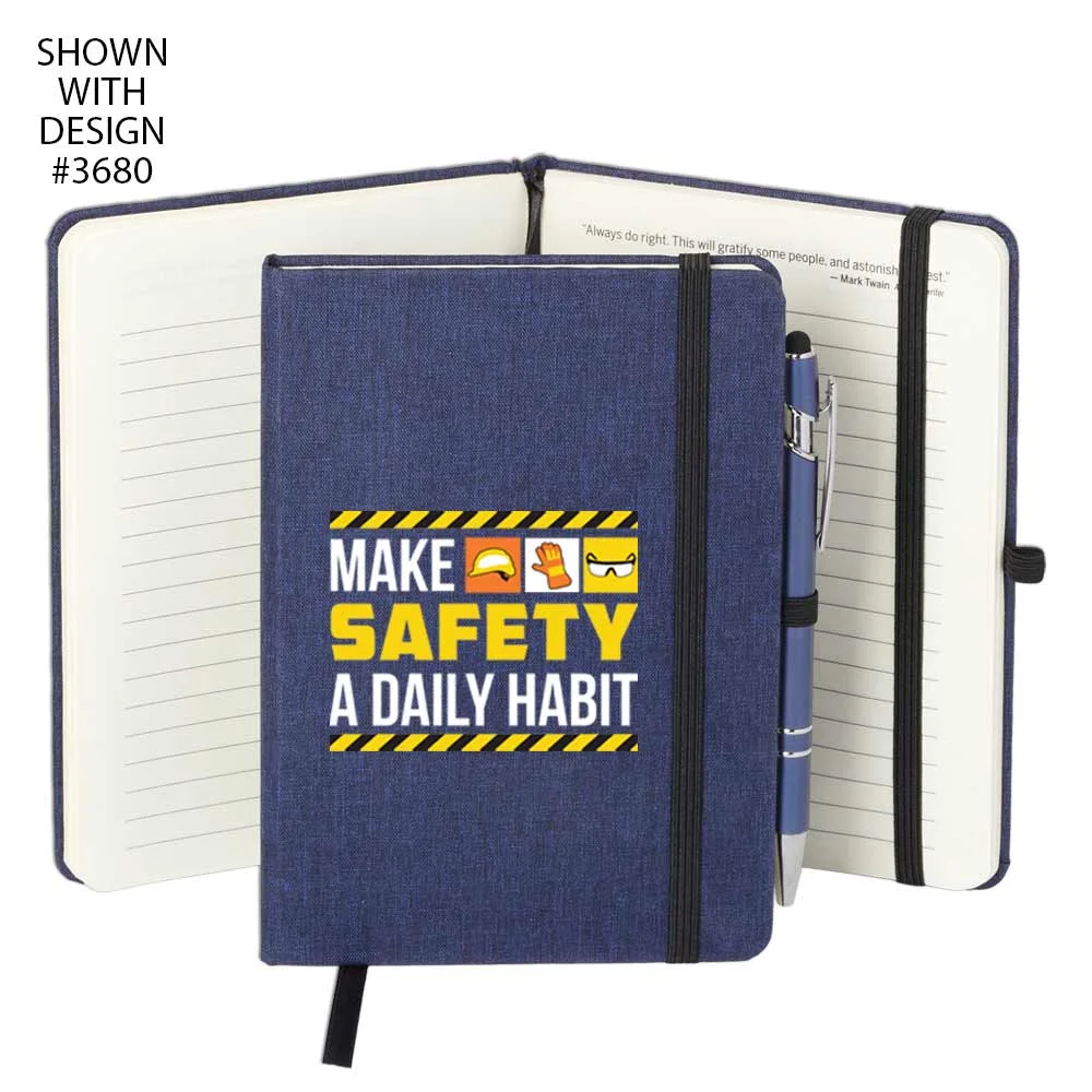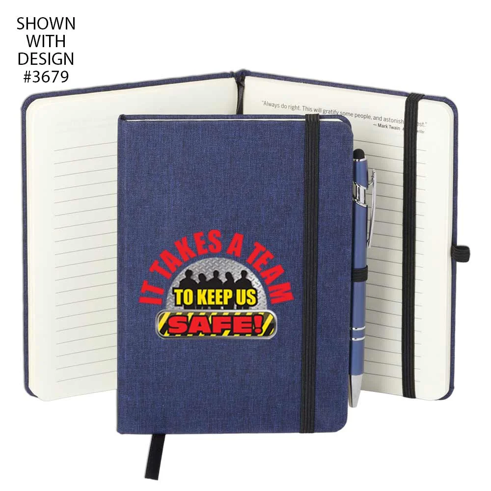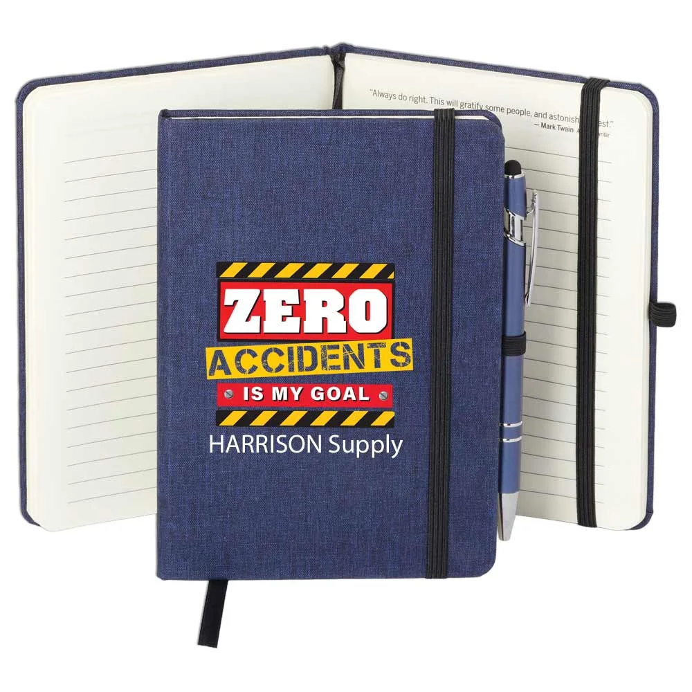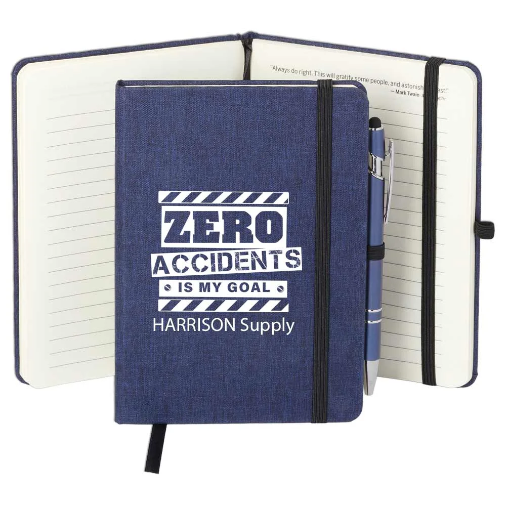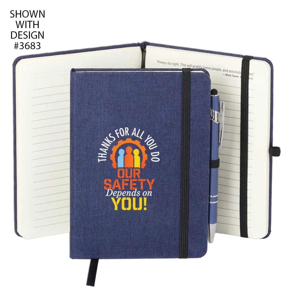 Workplace Safety Navy Heathered Journal With Teamwork Quotes & Stylus Pen - Personalized