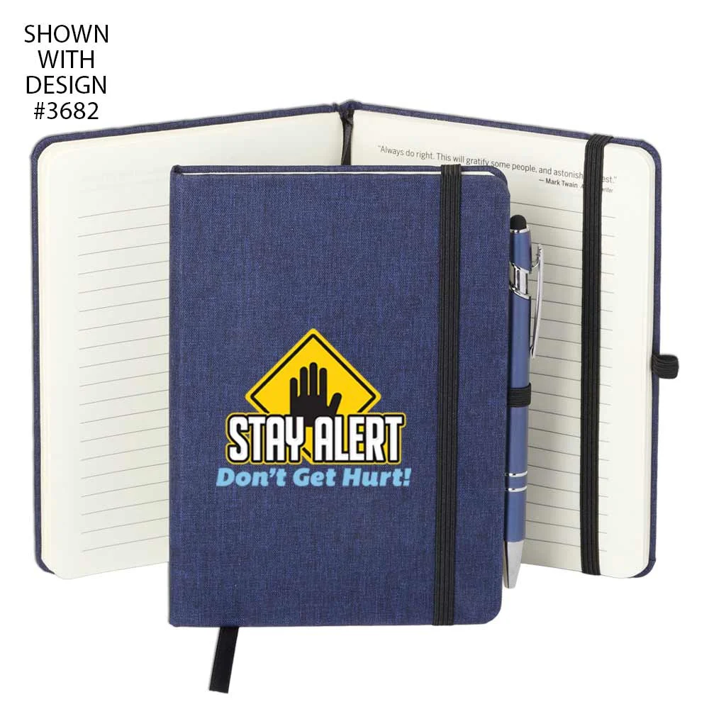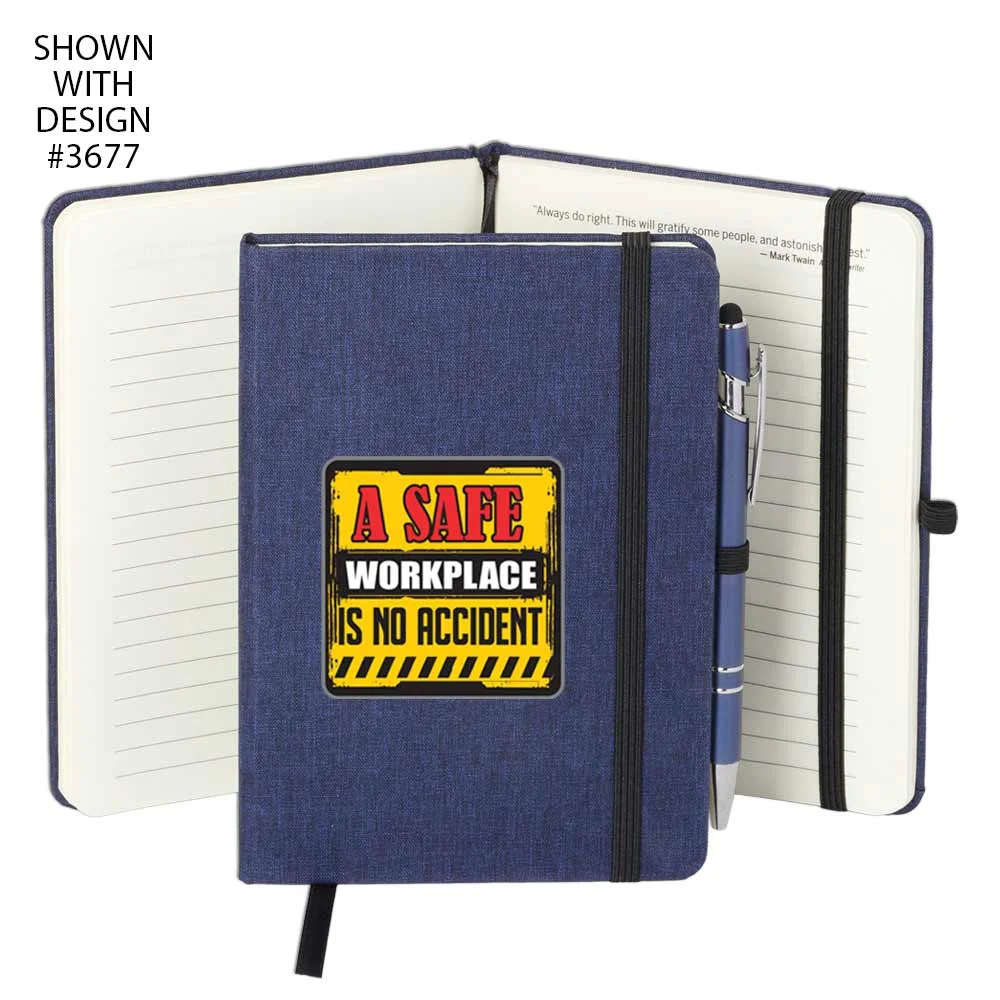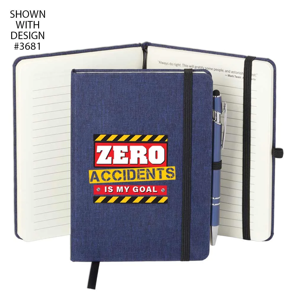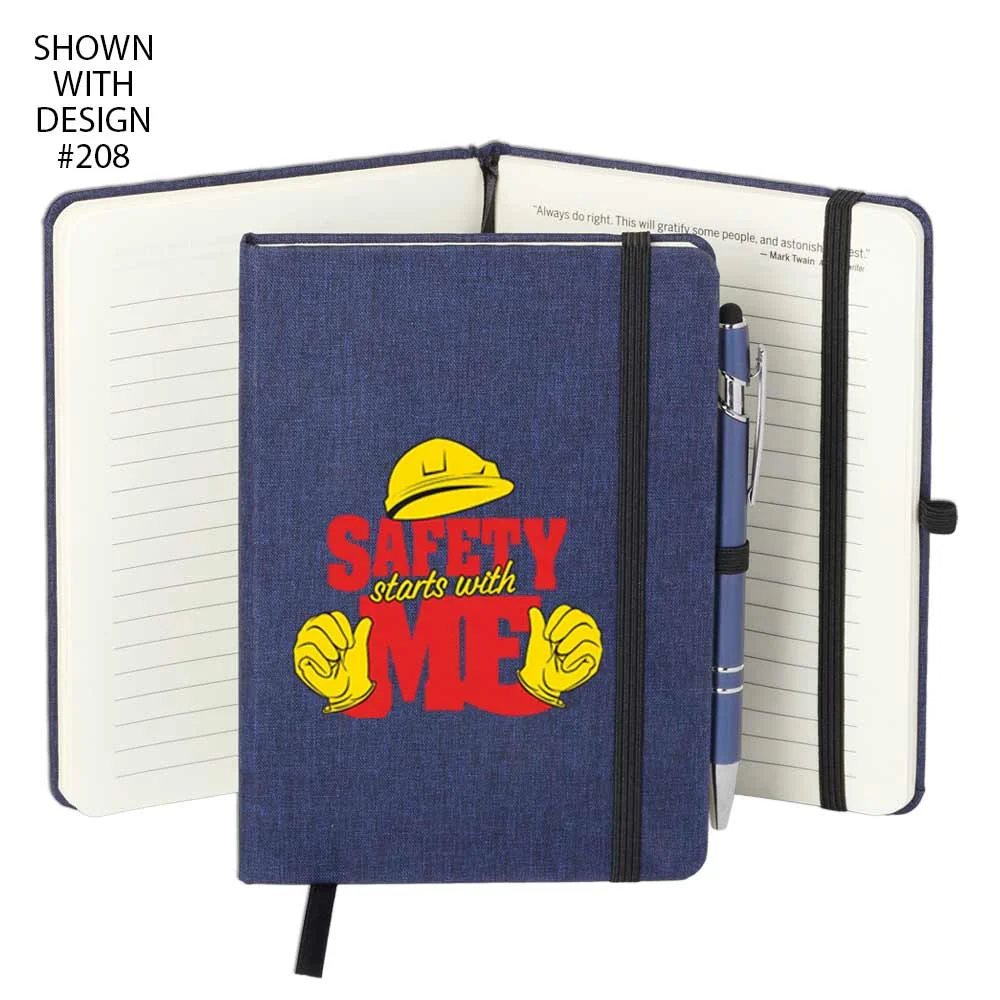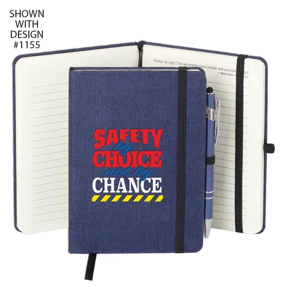 Workplace Safety Navy Heathered Journal With Teamwork Quotes & Stylus Pen - Personalized