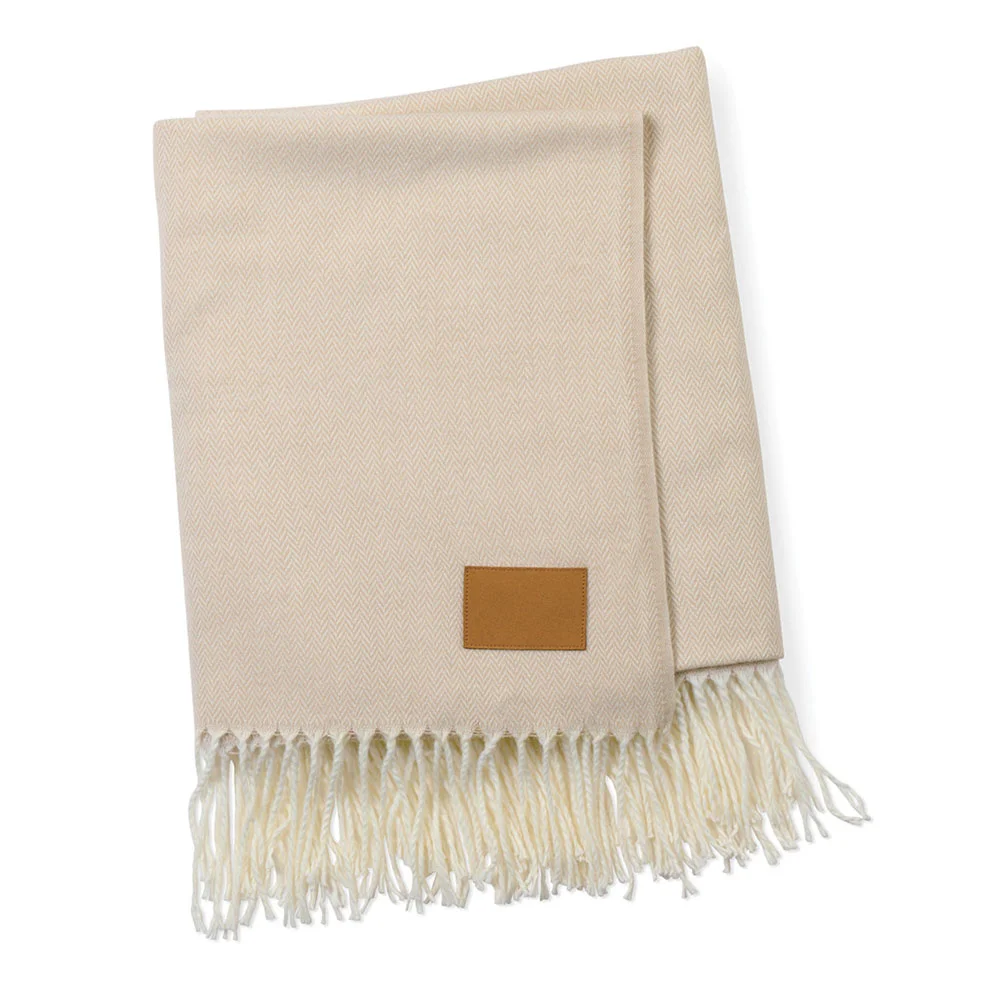 Striped Blanket with Leather Holder - Laser-Engraved Personalization Available