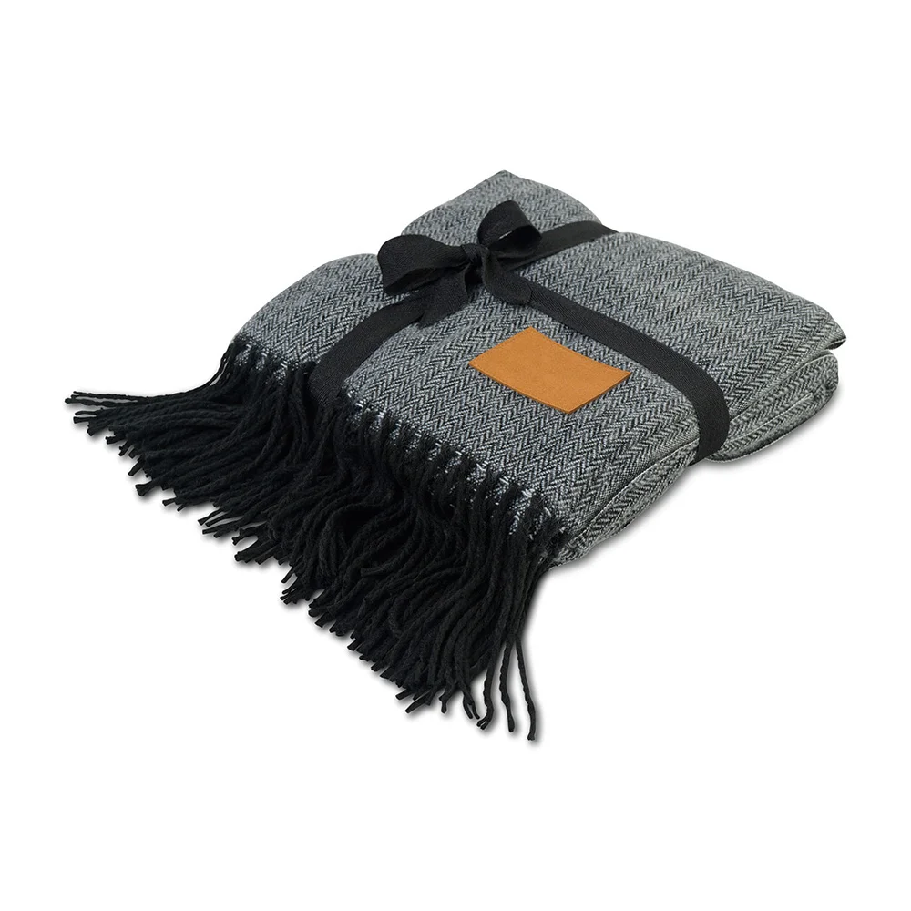 Gray Plaid Cozy Throw Blanket - Laser-Engraved Personalization Available