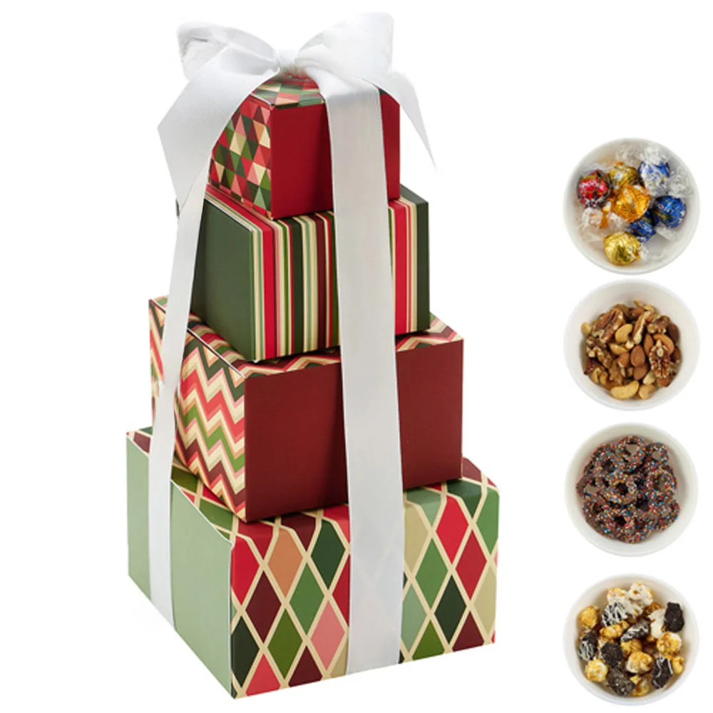Holiday 4-Tier Gourmet Treat Tower - Fill Option 2 - One-Color Personalization Available