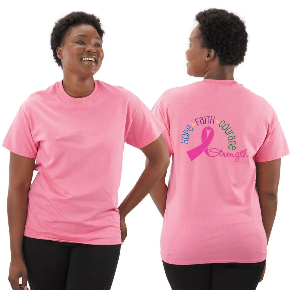Hope, Love, Strength, Courage Unisex 2-Sided T-Shirt - Silkscreened Personalization Available