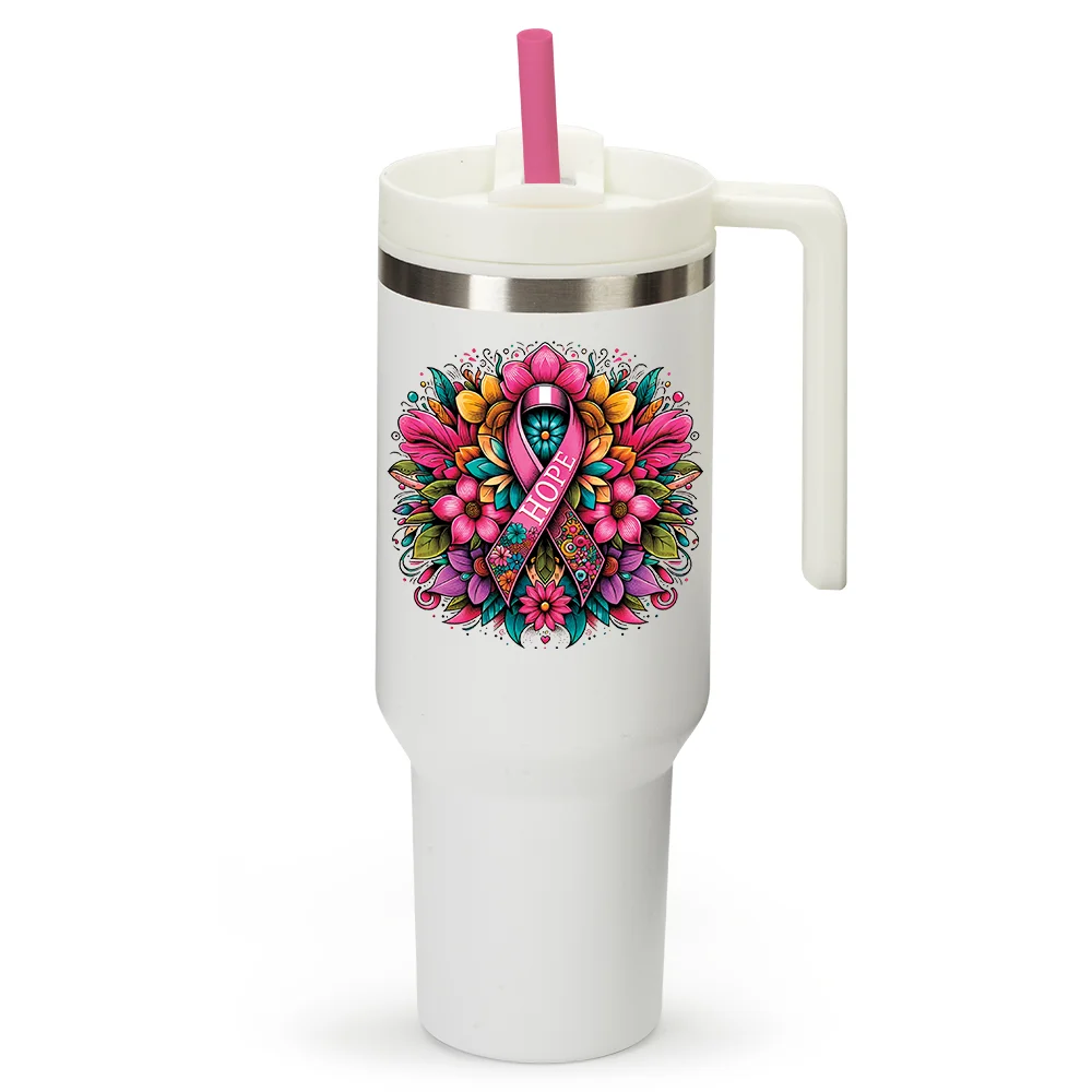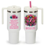Hope Floral Ribbon Quencher Stainless-Steel/Plastic-Lined Tumbler 40 oz. With Handle - One-Color Personalization Available