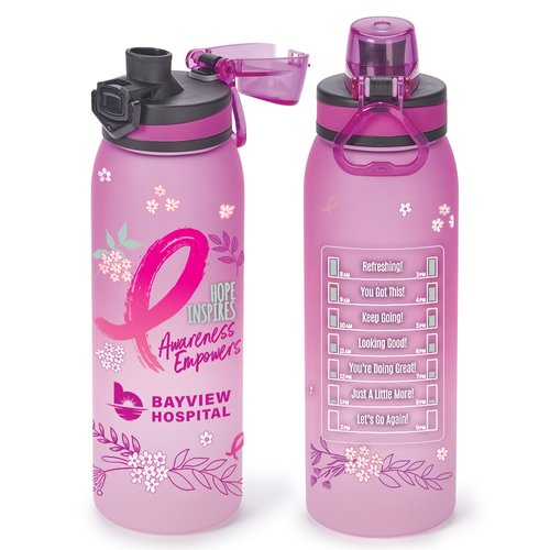 Features our exclusive Hope Inspires, Awareness Empowers design on the front; Motivating messages on the back encourage fluid intake throughout the day
