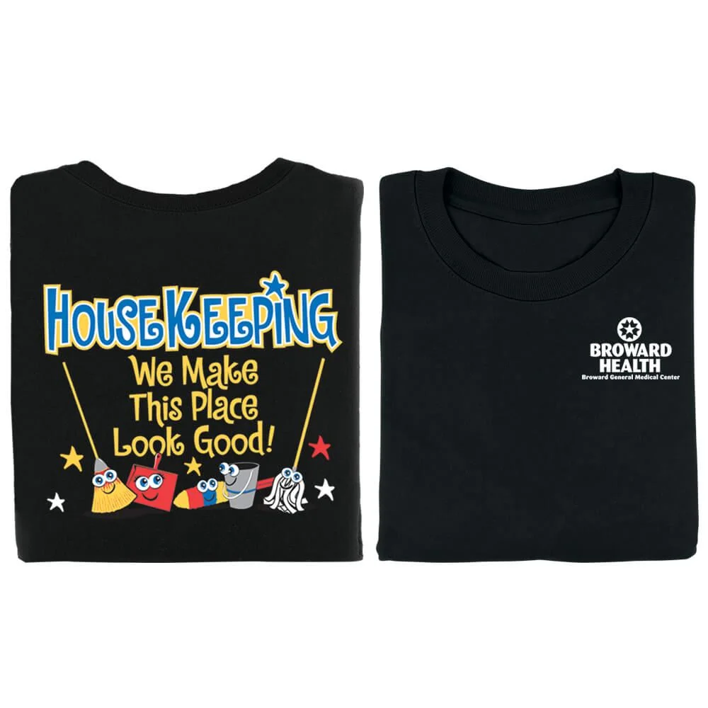 Housekeeping: An Awesome Team Keeping It Clean Unisex 2-Sided Short-Sleeved T-Shirt - Silkscreened Personalization Available