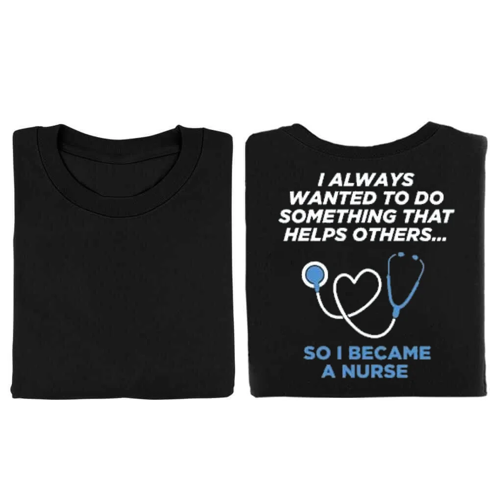 Features our exclusive "I Always Wanted To Do Something That Helps Others...So I Became A Nurse" slogan along with option for personalization on the front left chest