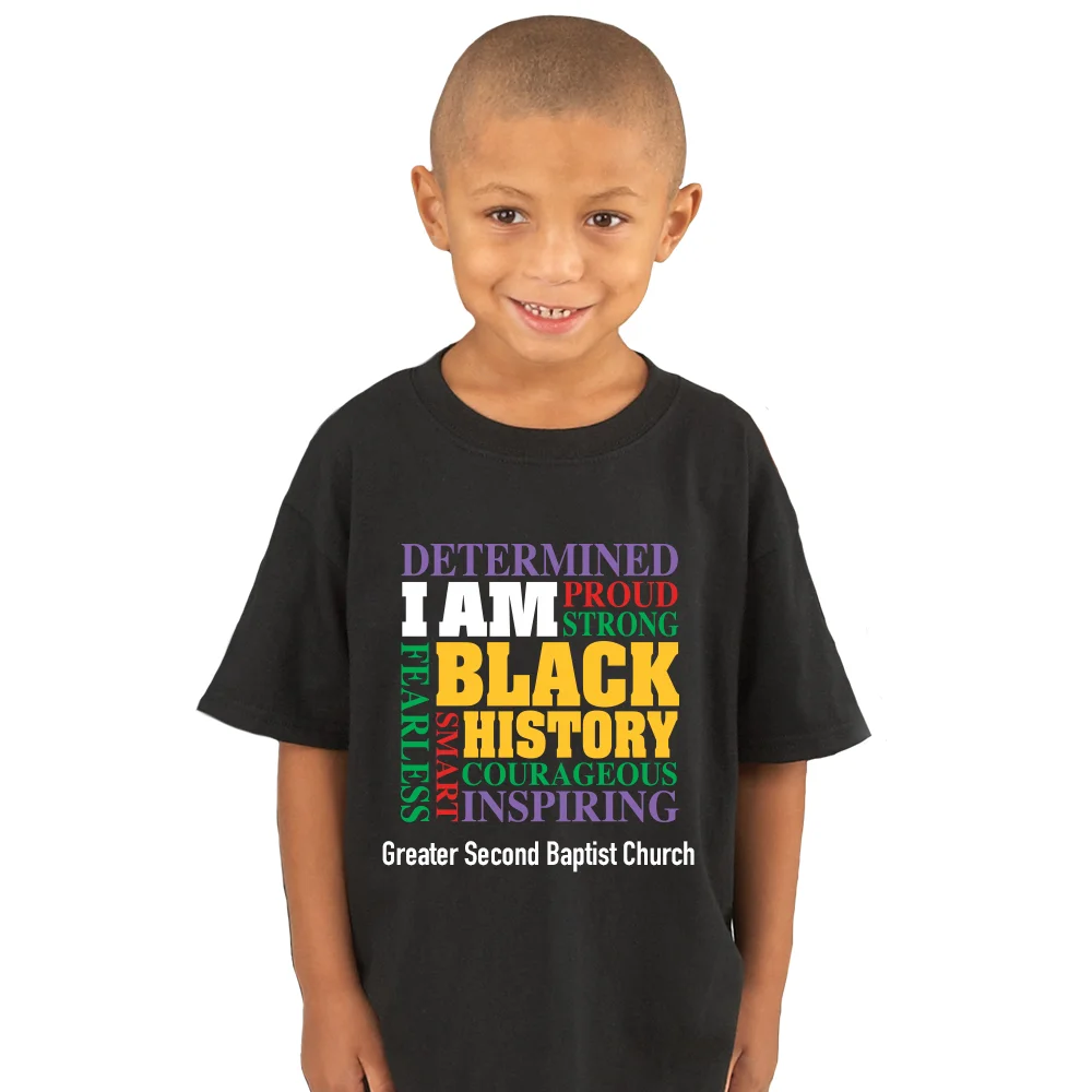 I Am Black History Youth T-Shirt - Silkscreened Personalization Available